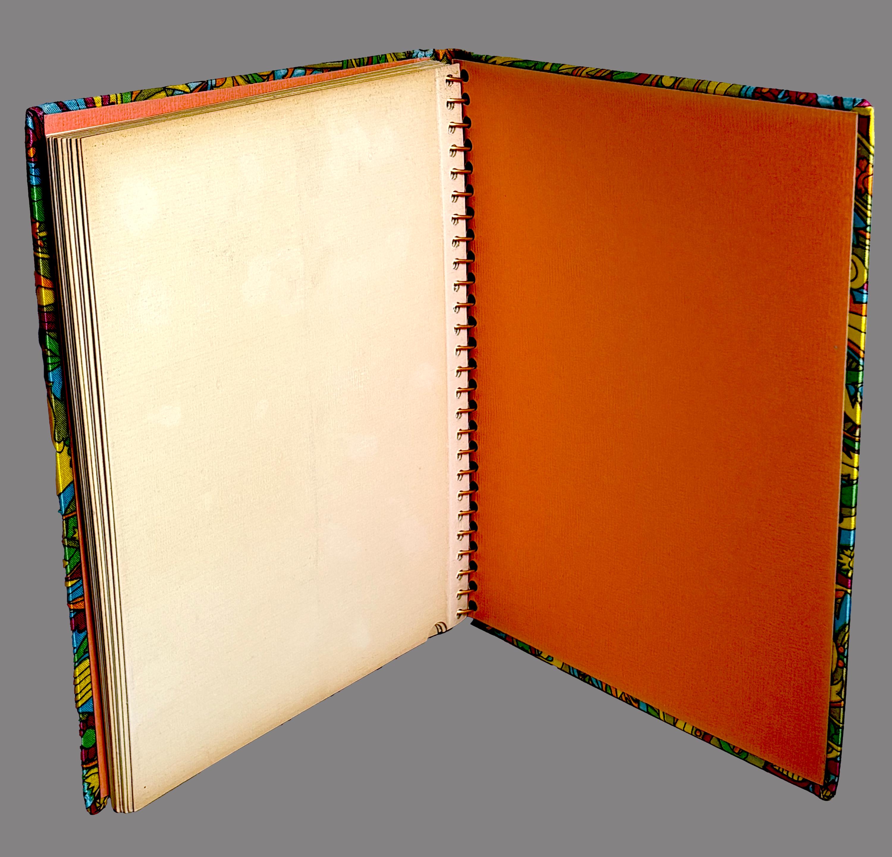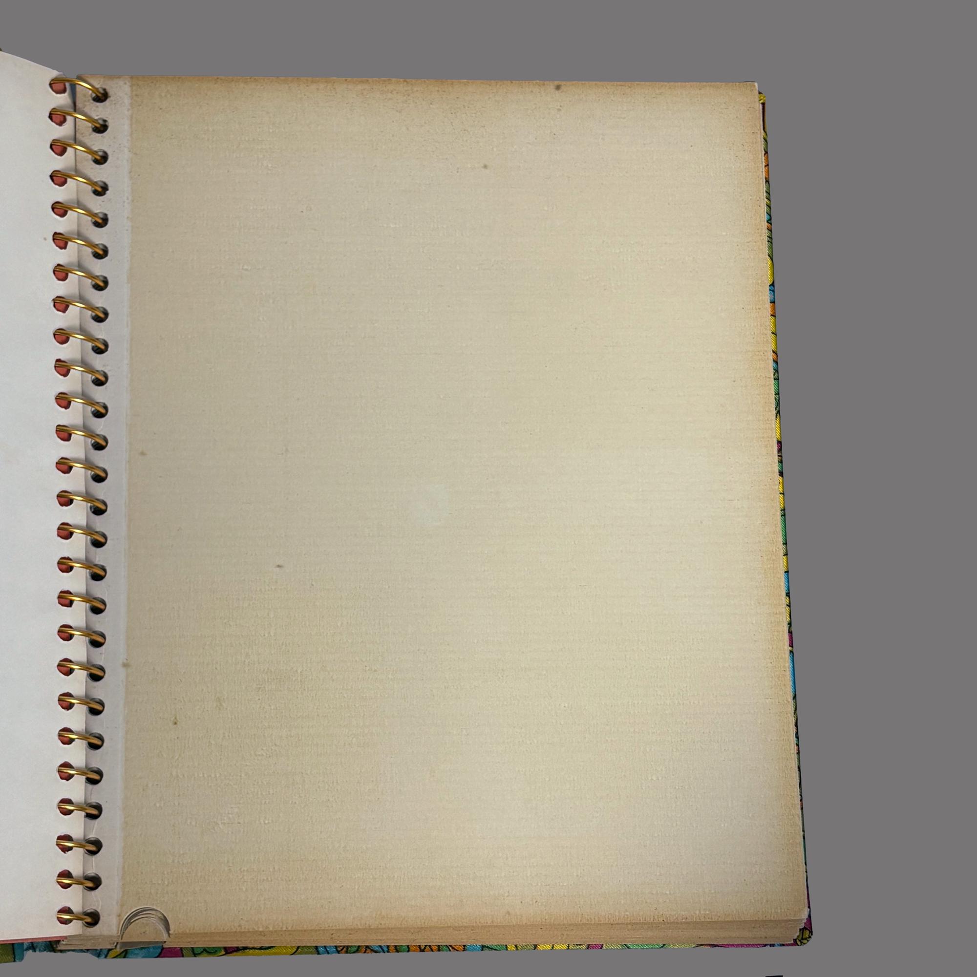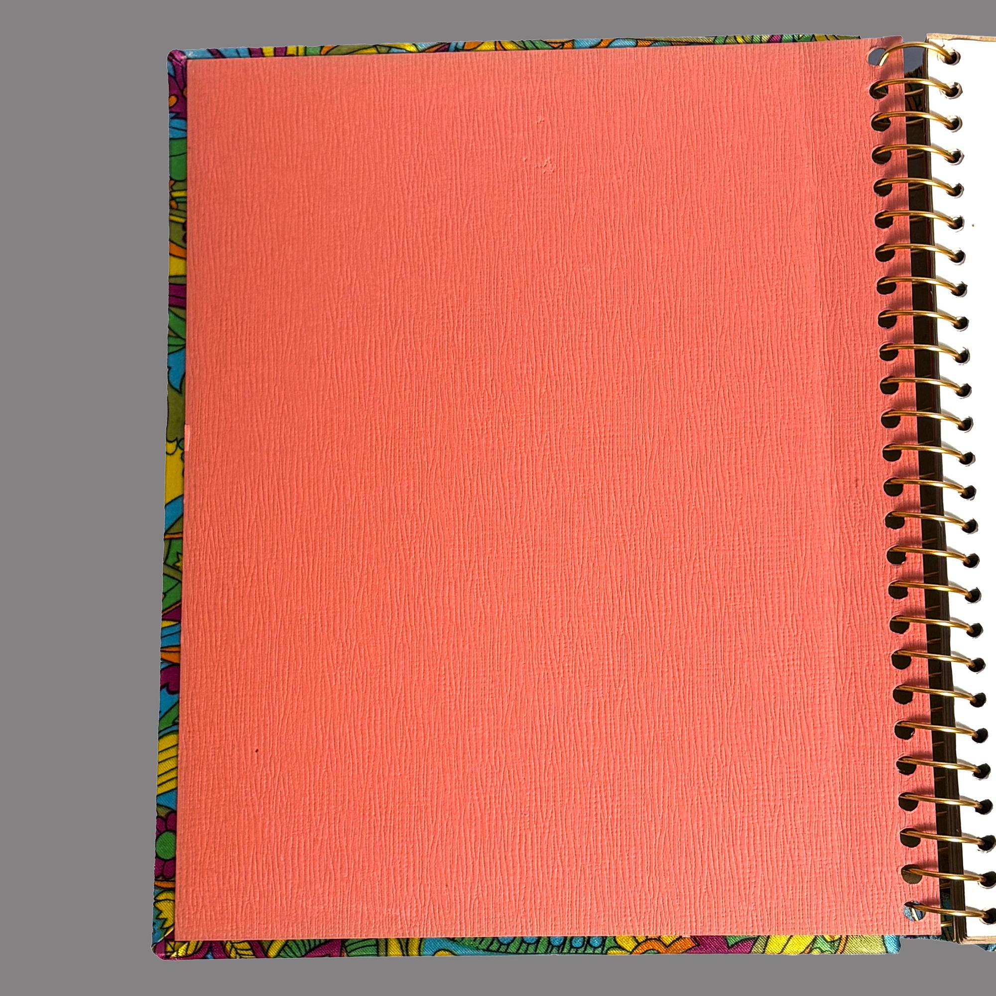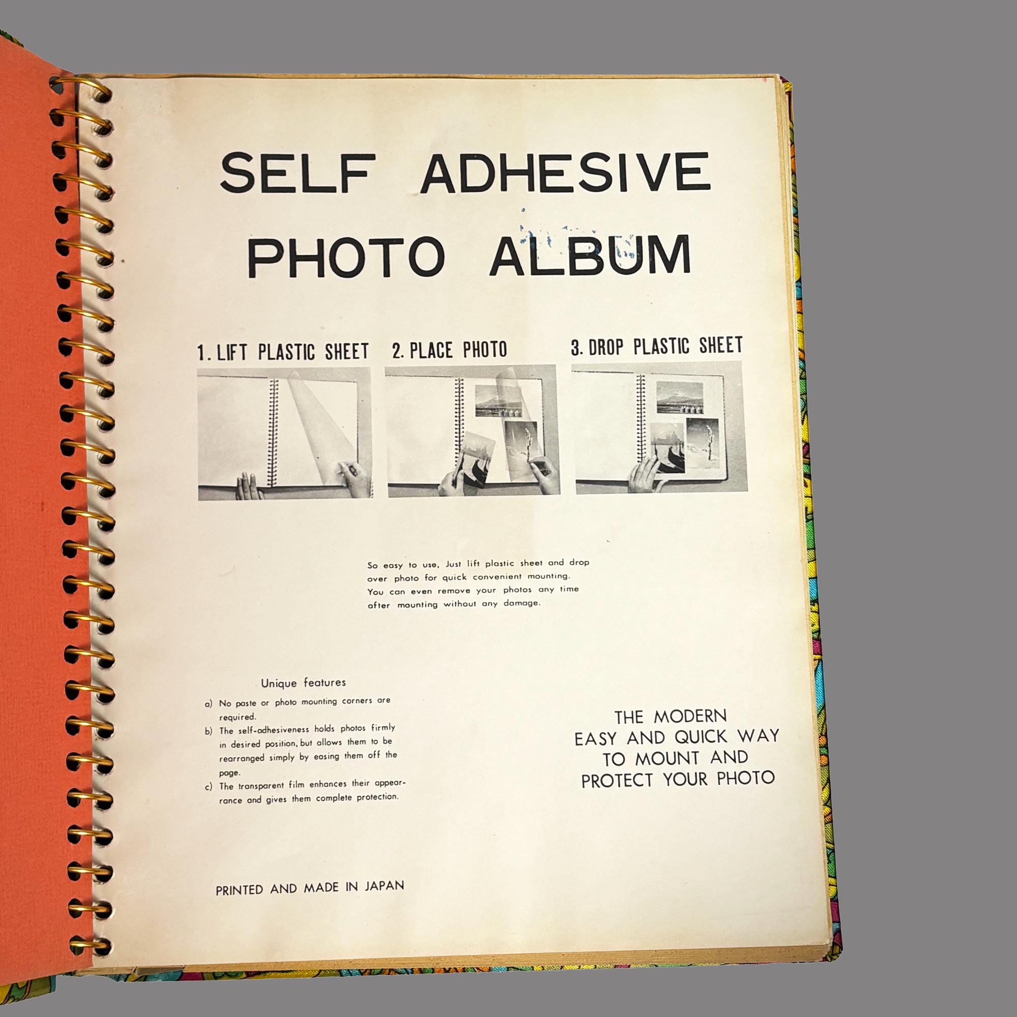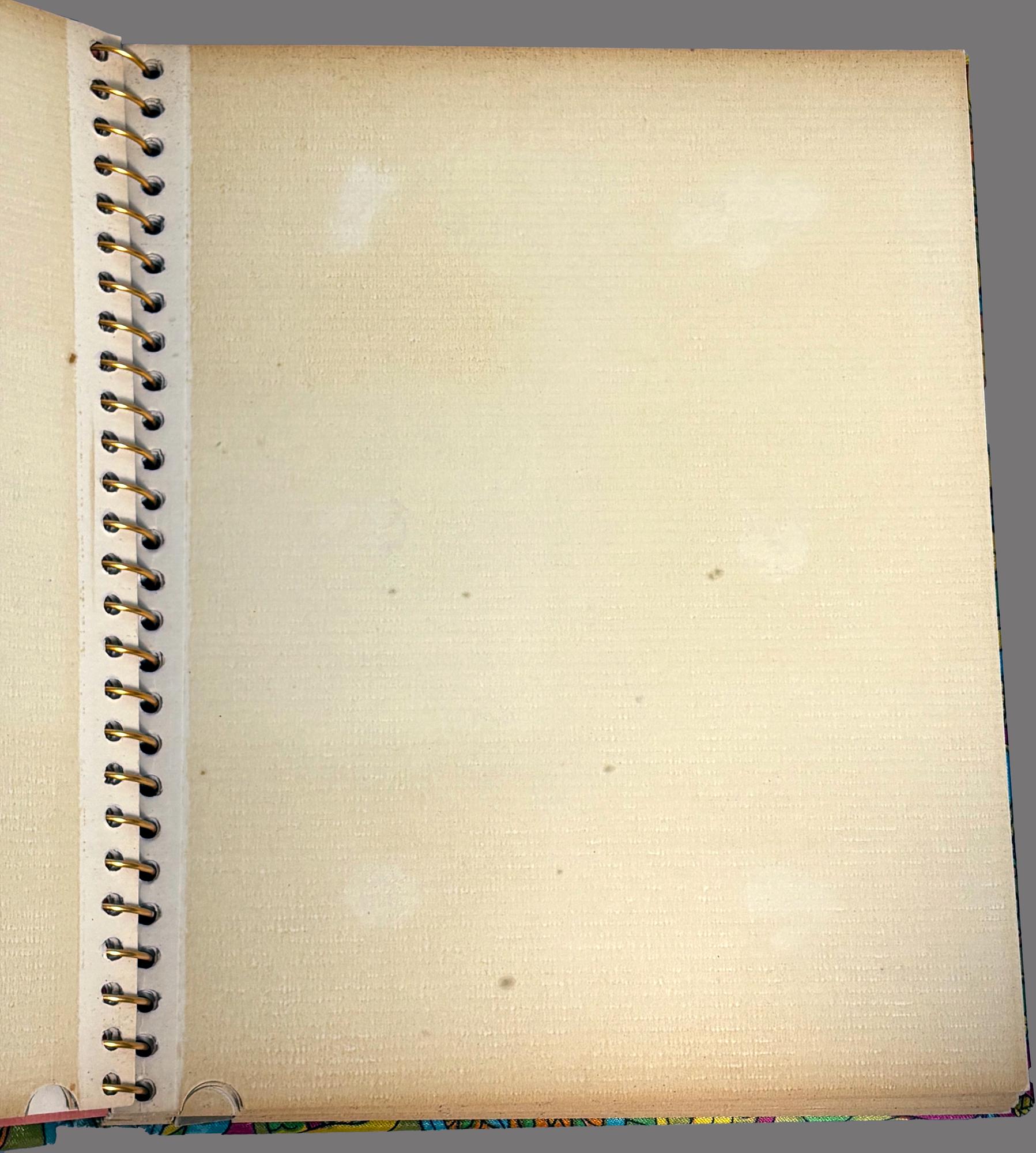 Colorful vintage 1970s MCM sateen psychedelic fabric covered Photo Album, printed and made in Japan.
