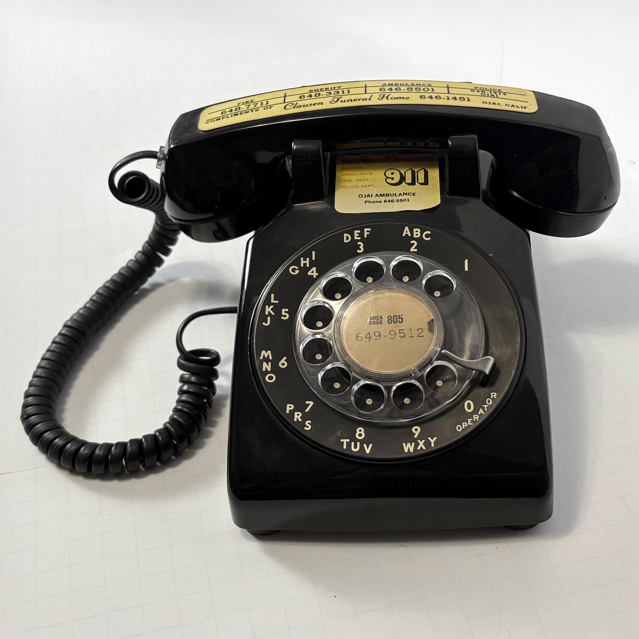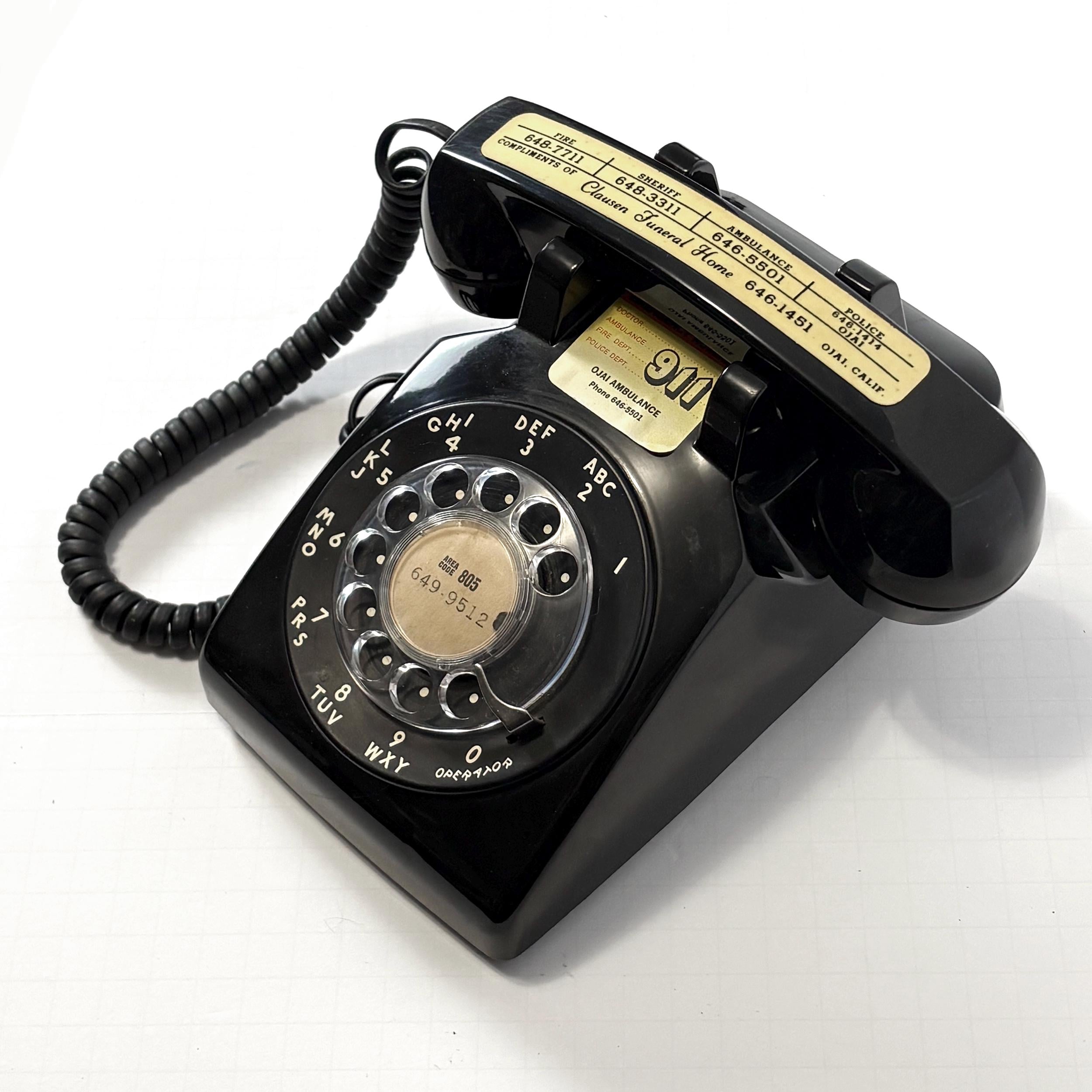 Vintage 1979 black Bell Pacific 500DM rotary phone from Ojai, California.