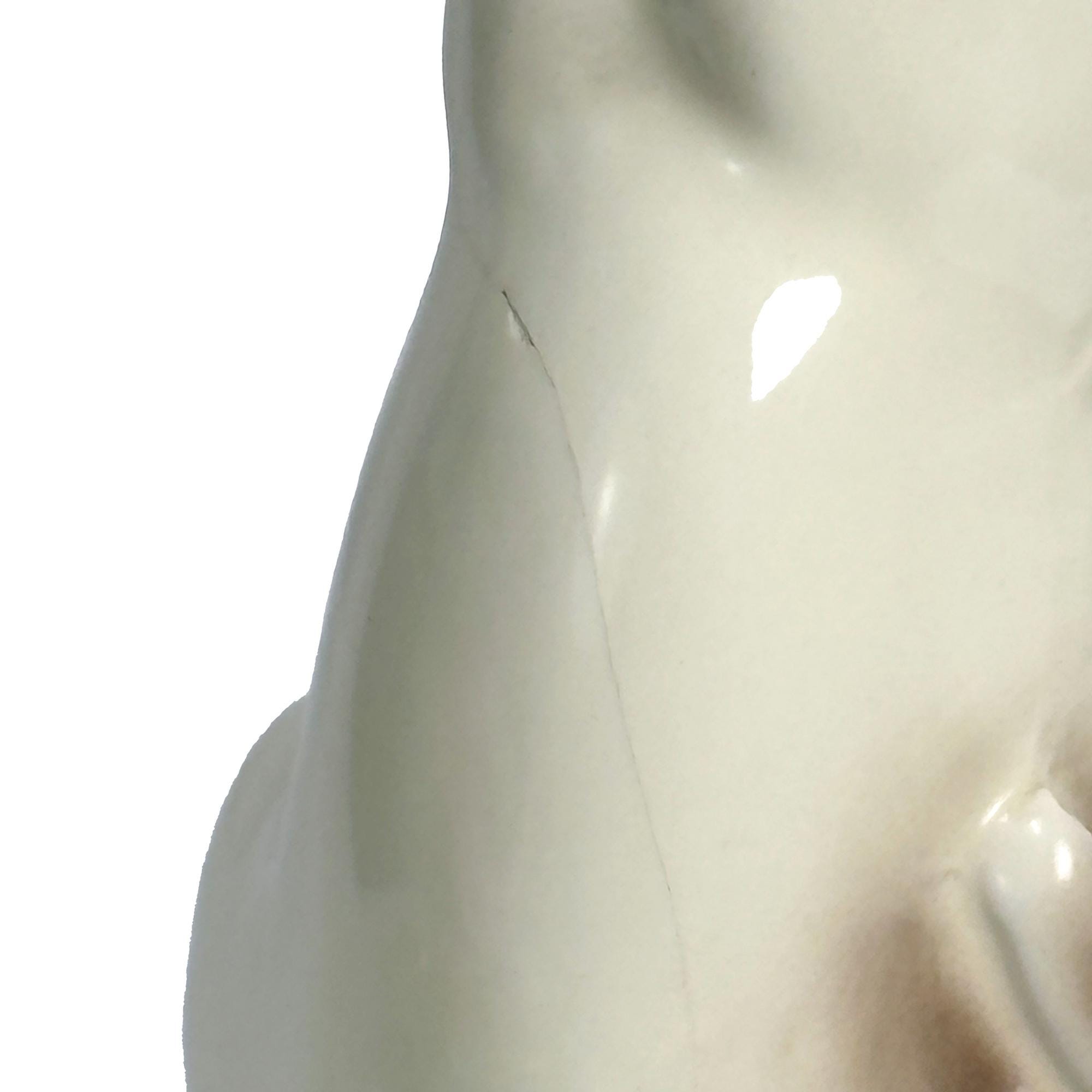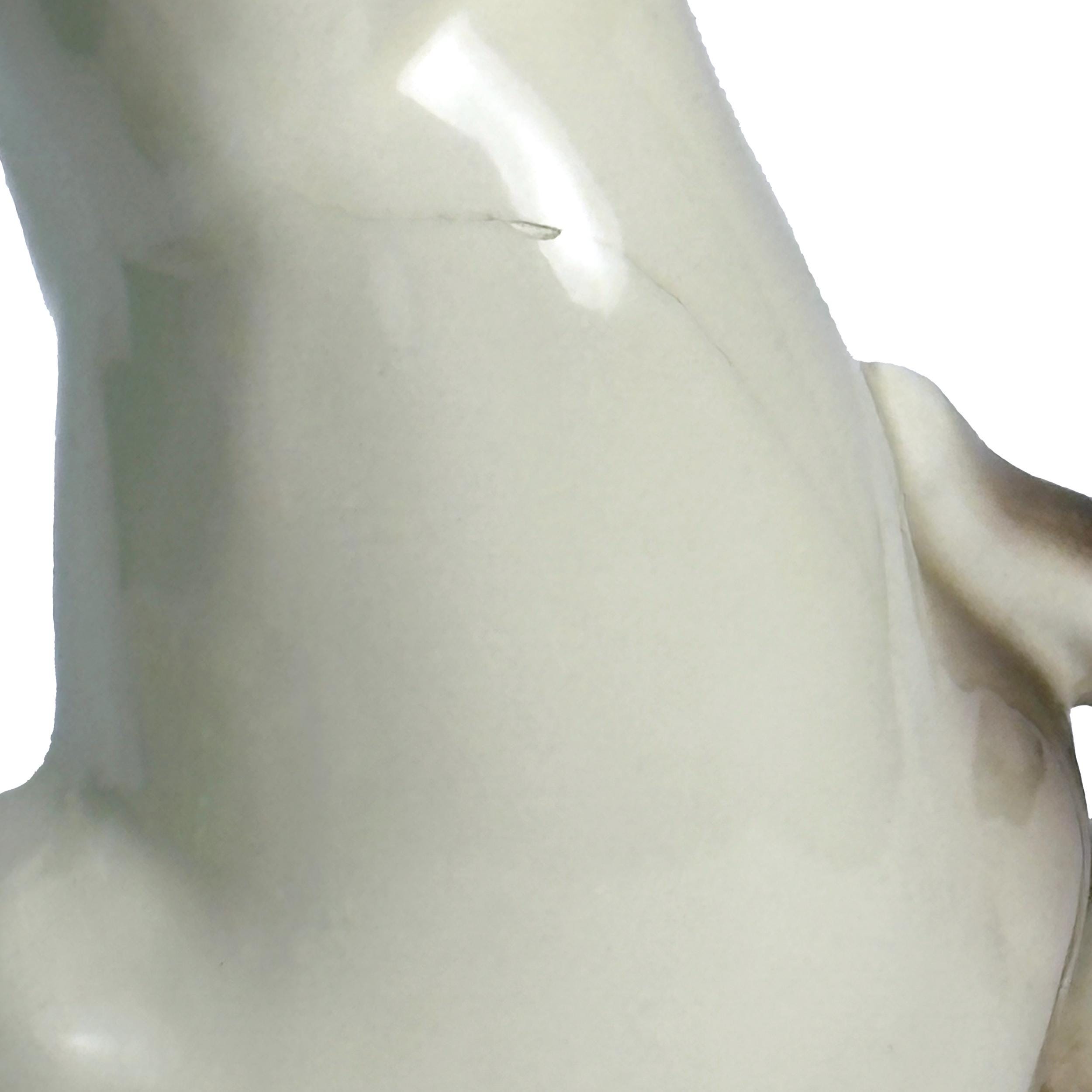 In nice vintage condition. Clean with no overall wear or discoloration. Hairline crack in the reverse but appears to surface and not structural. Only other noted wear is a small chip to the unglazed underside which is not visible when standing.