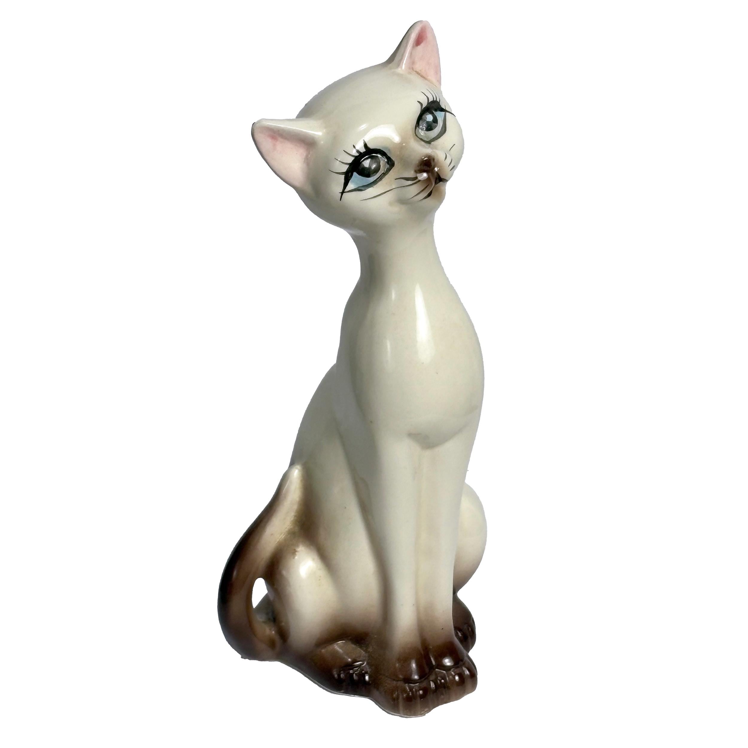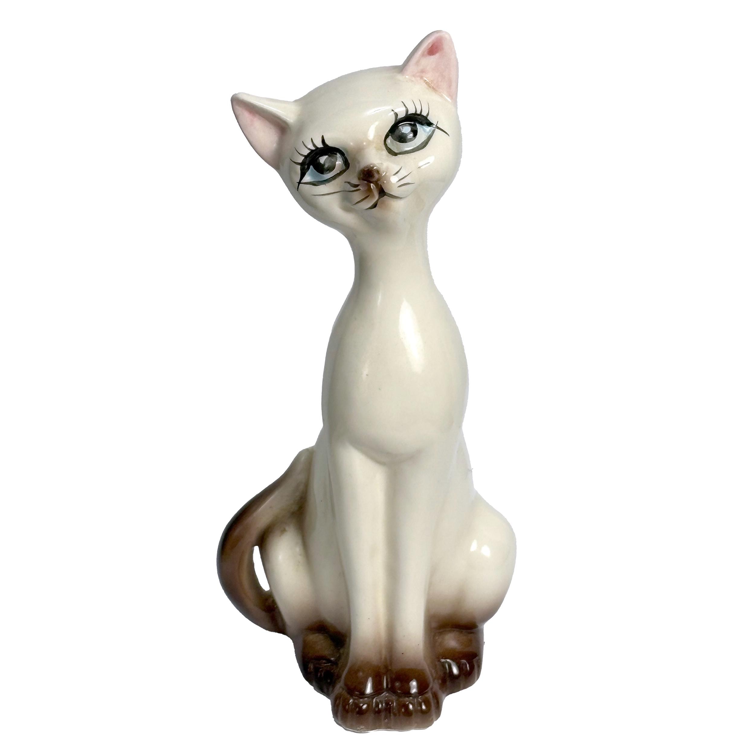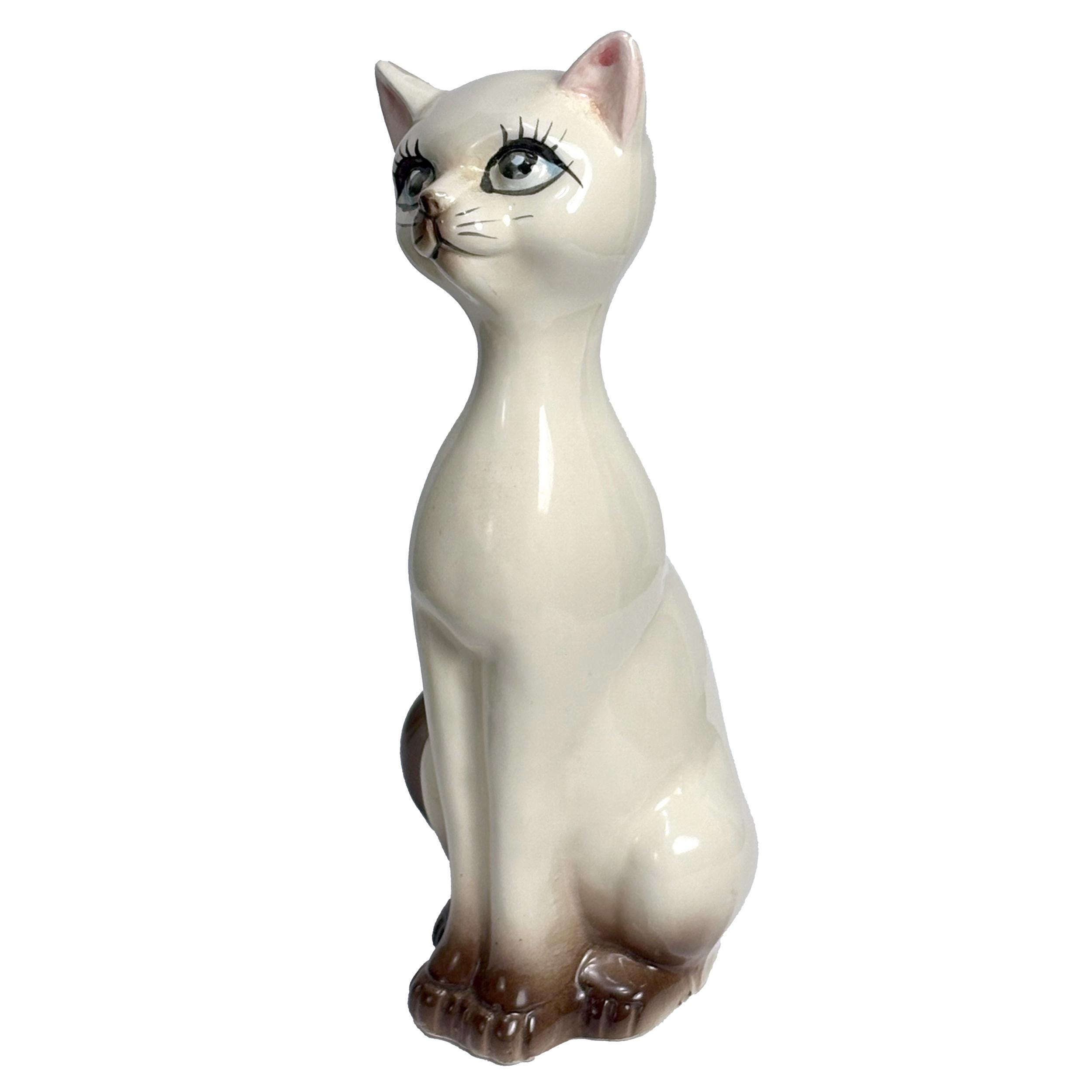 Mid-century vintage tall cat figurine measuring 9.5" tall and 4" x 3.5"