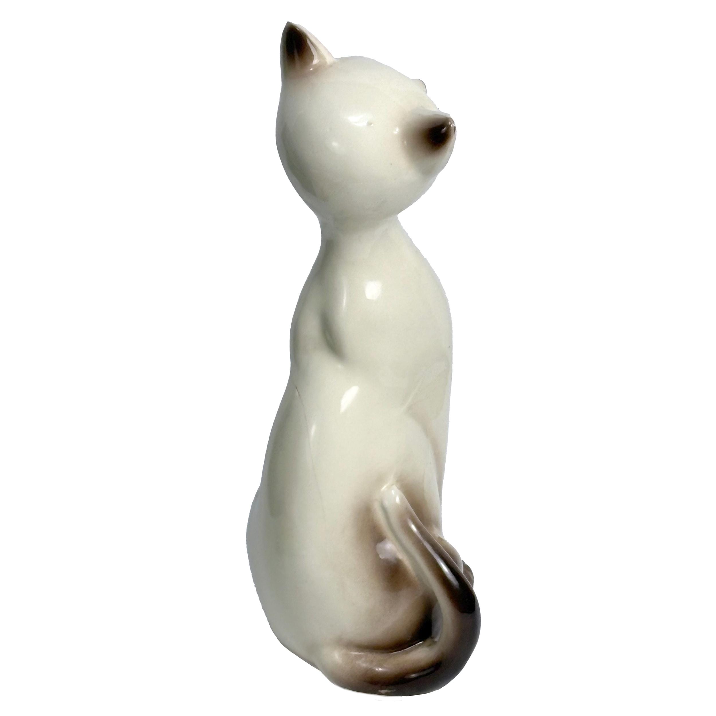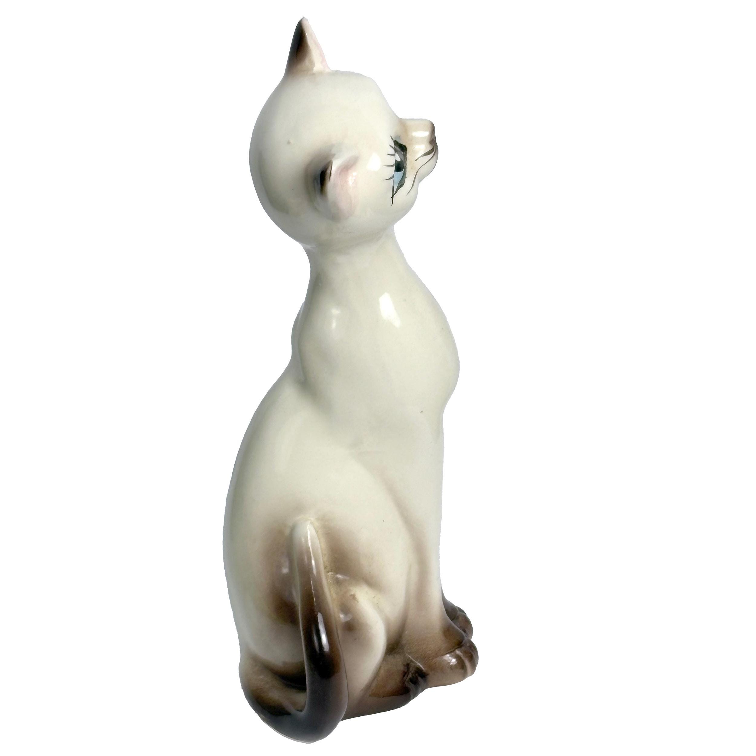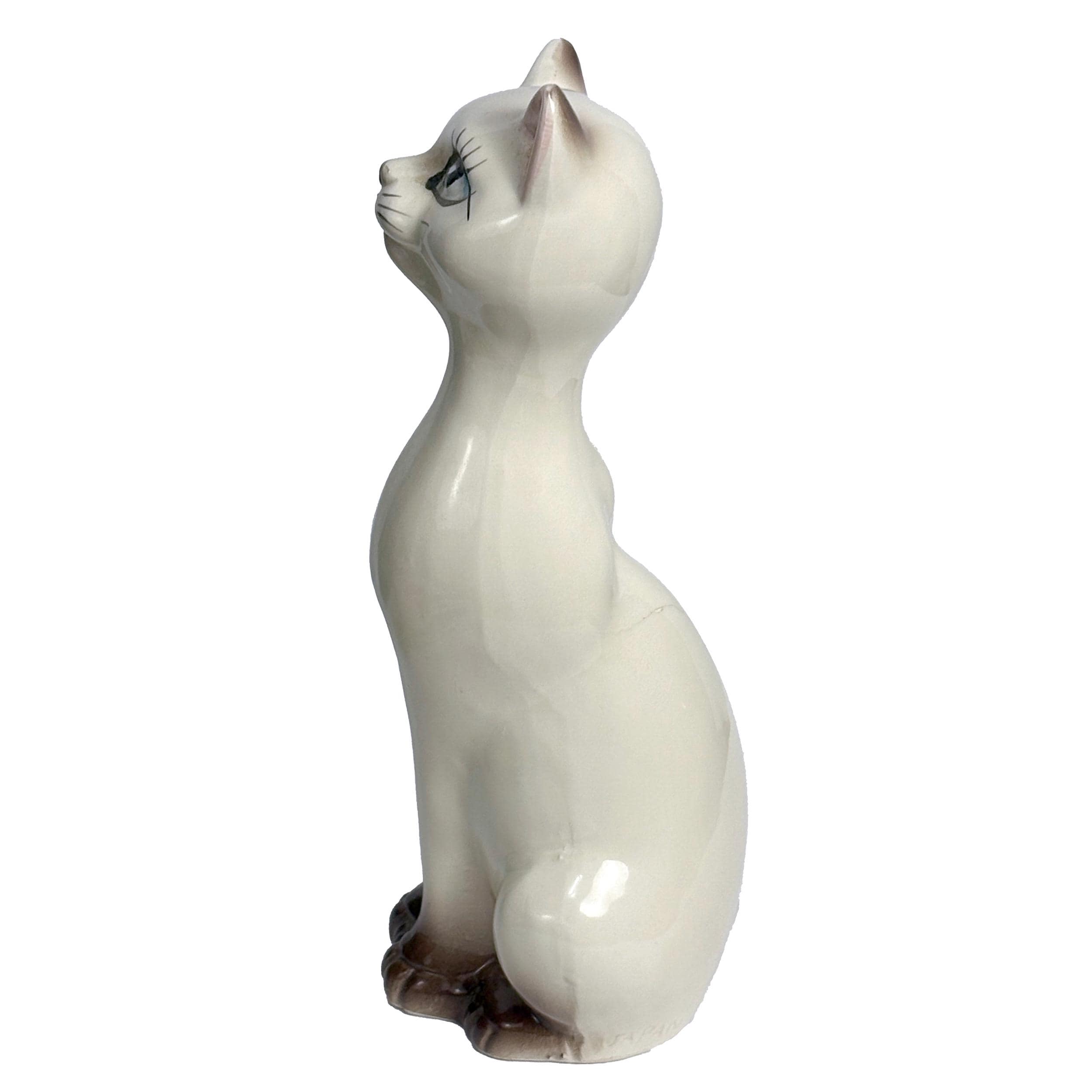 Mid-century vintage tall cat figurine measuring 9.5" tall and 4" x 3.5"
