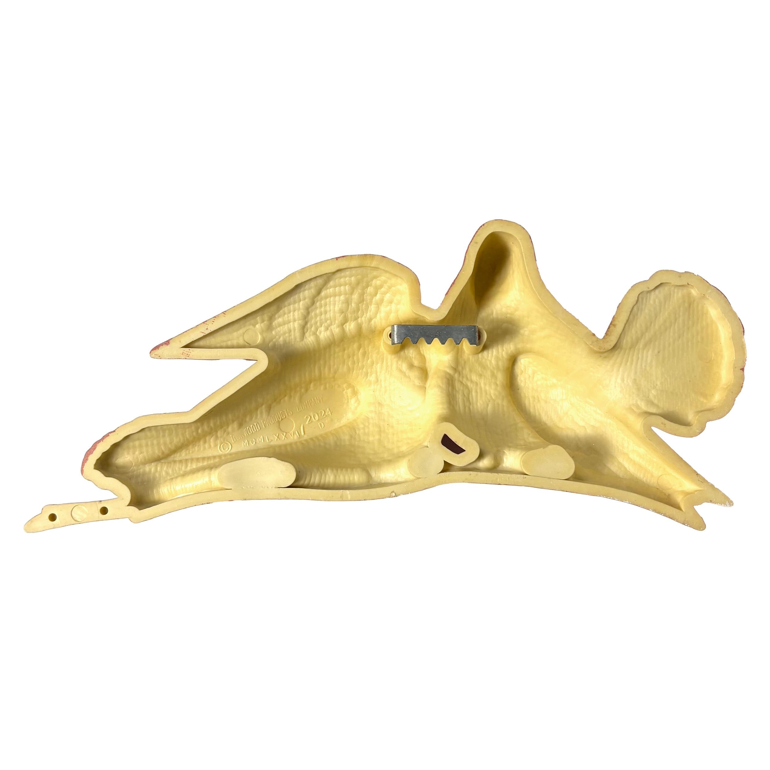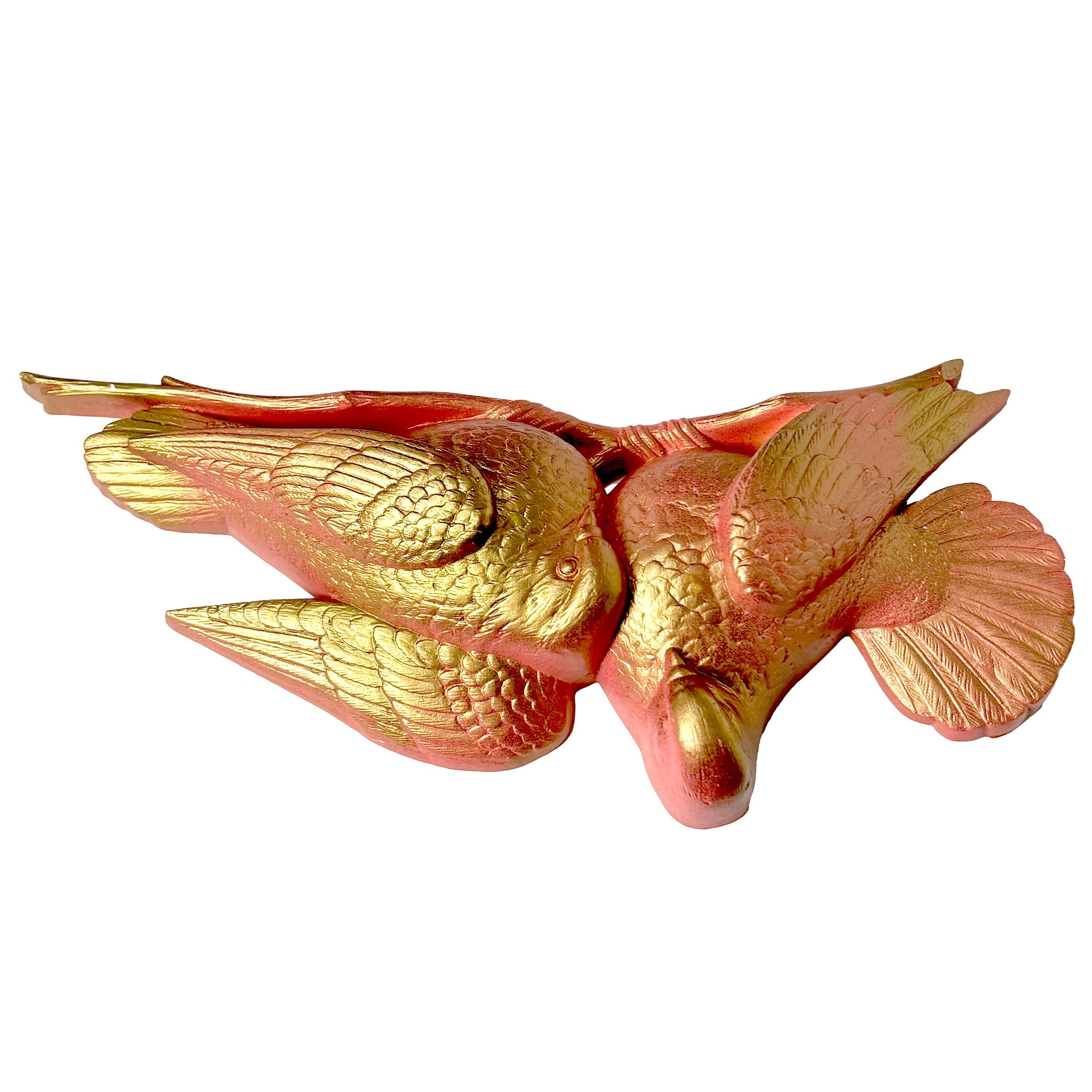 Vintage 1977 Burwood dove wall hanging in gold metallic and bright pink.