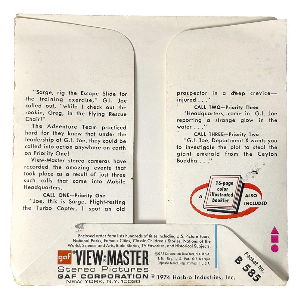 1974 GAF VIew-Master The Adventures of GI Joe 3 reel set, complete with picture cover, story booklet and inner sleeve.
