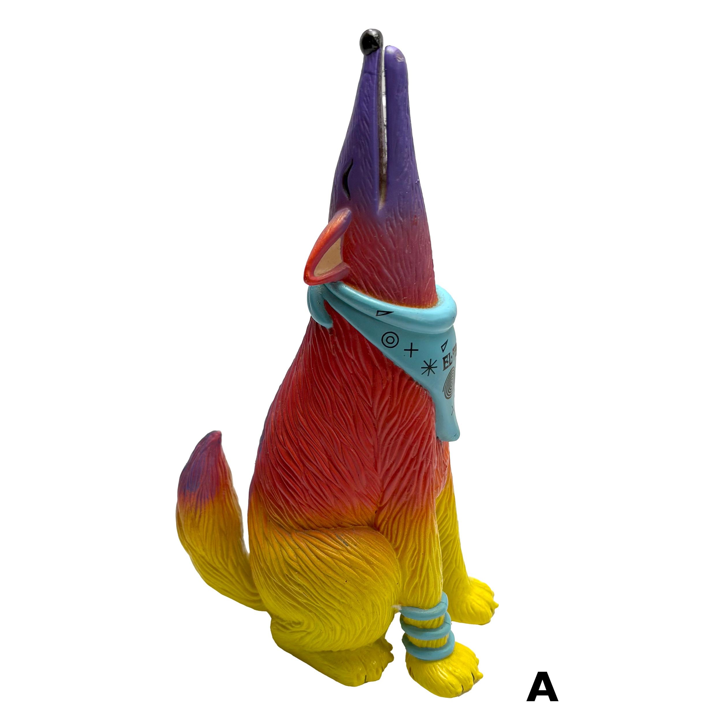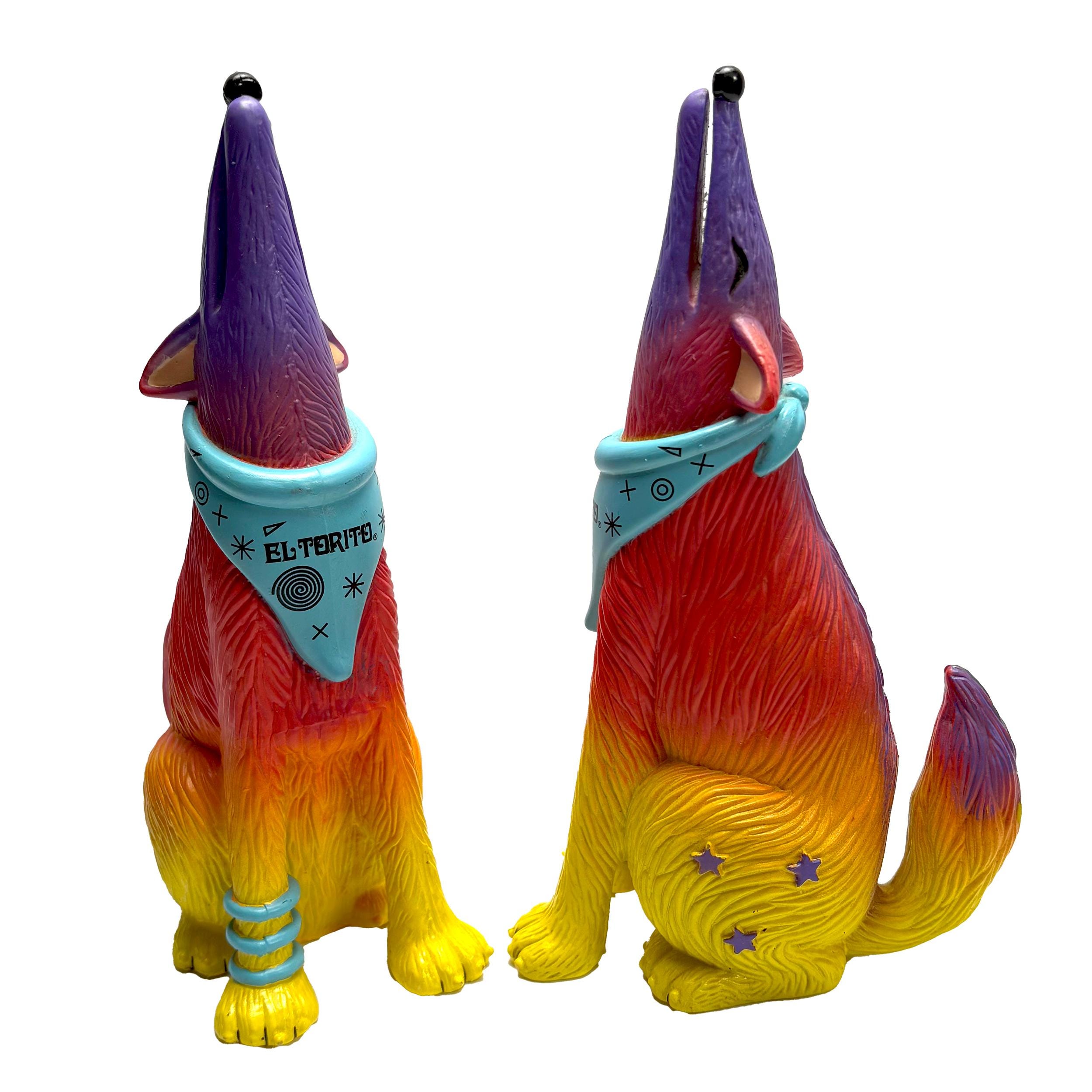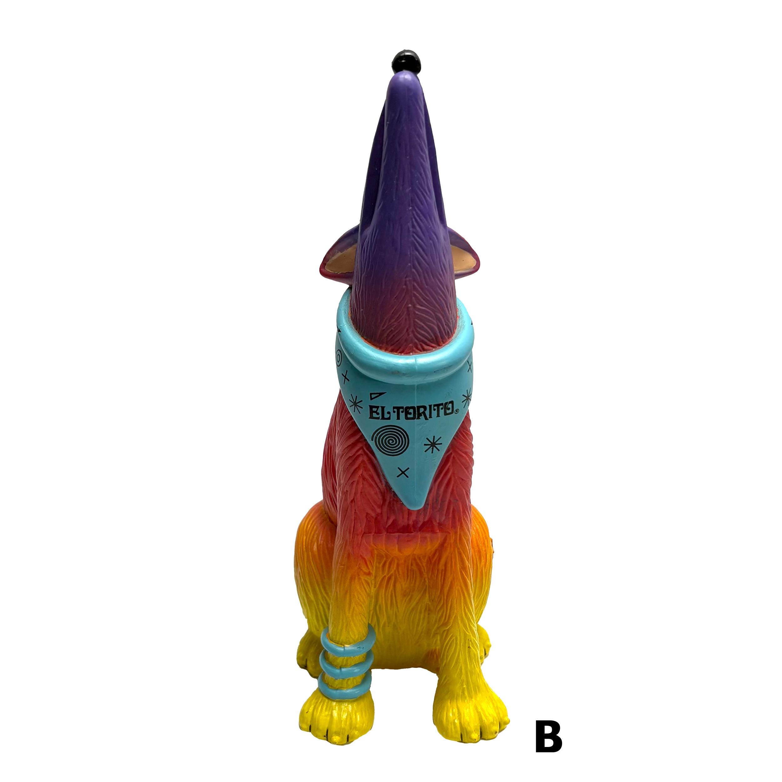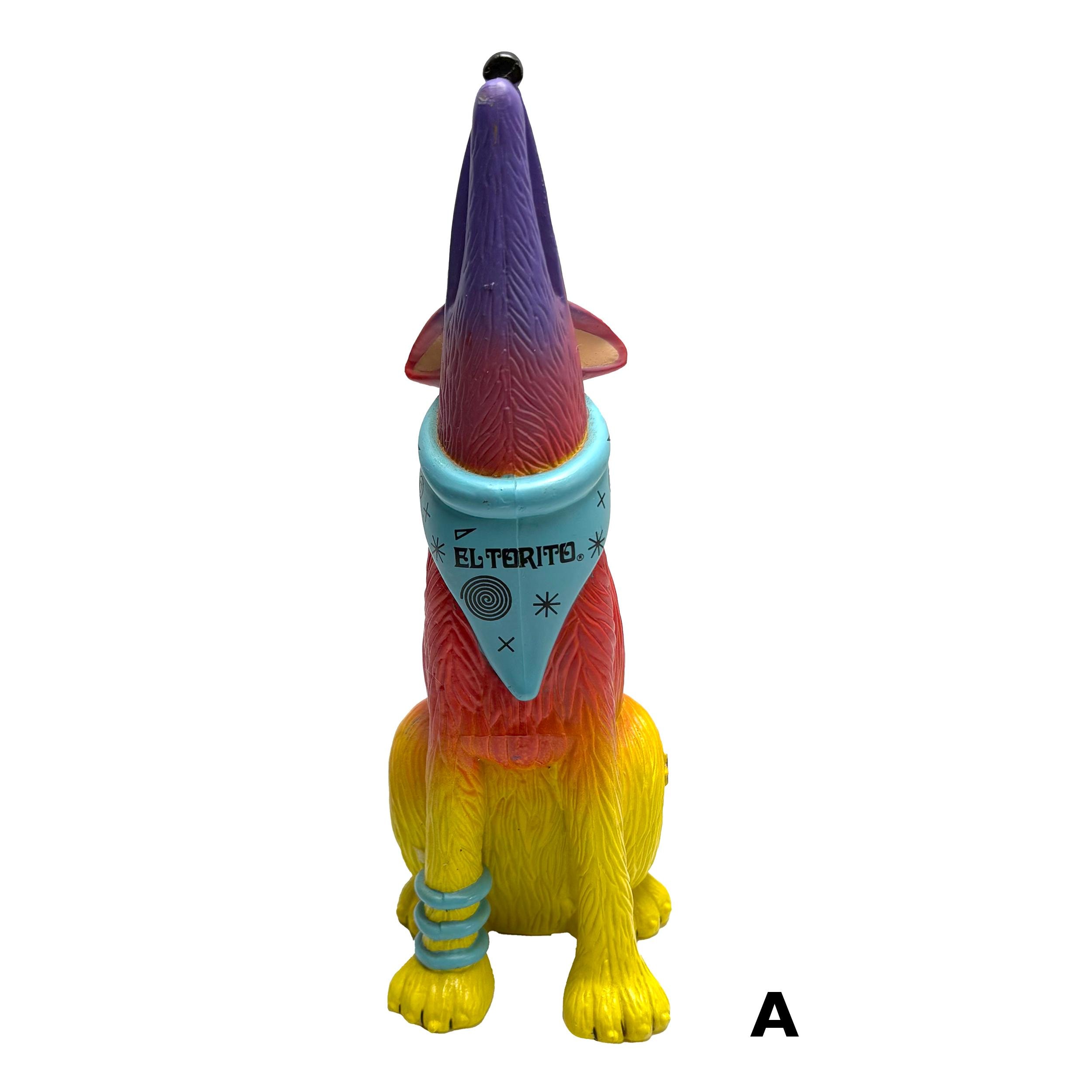 Hard vinyl in southwestern rainbow colors. Stands 7.25" tall, 2.5" wide and 4" deep.