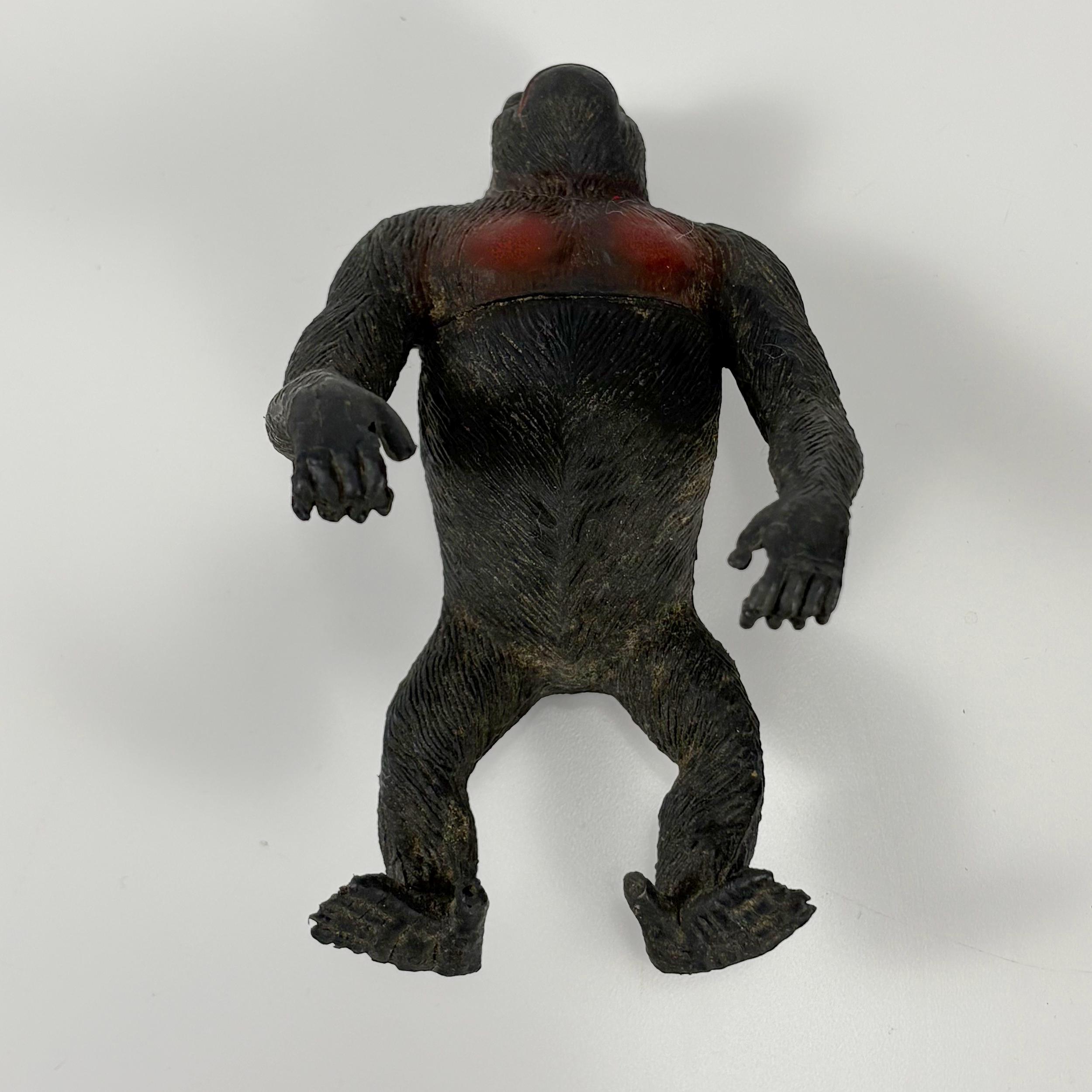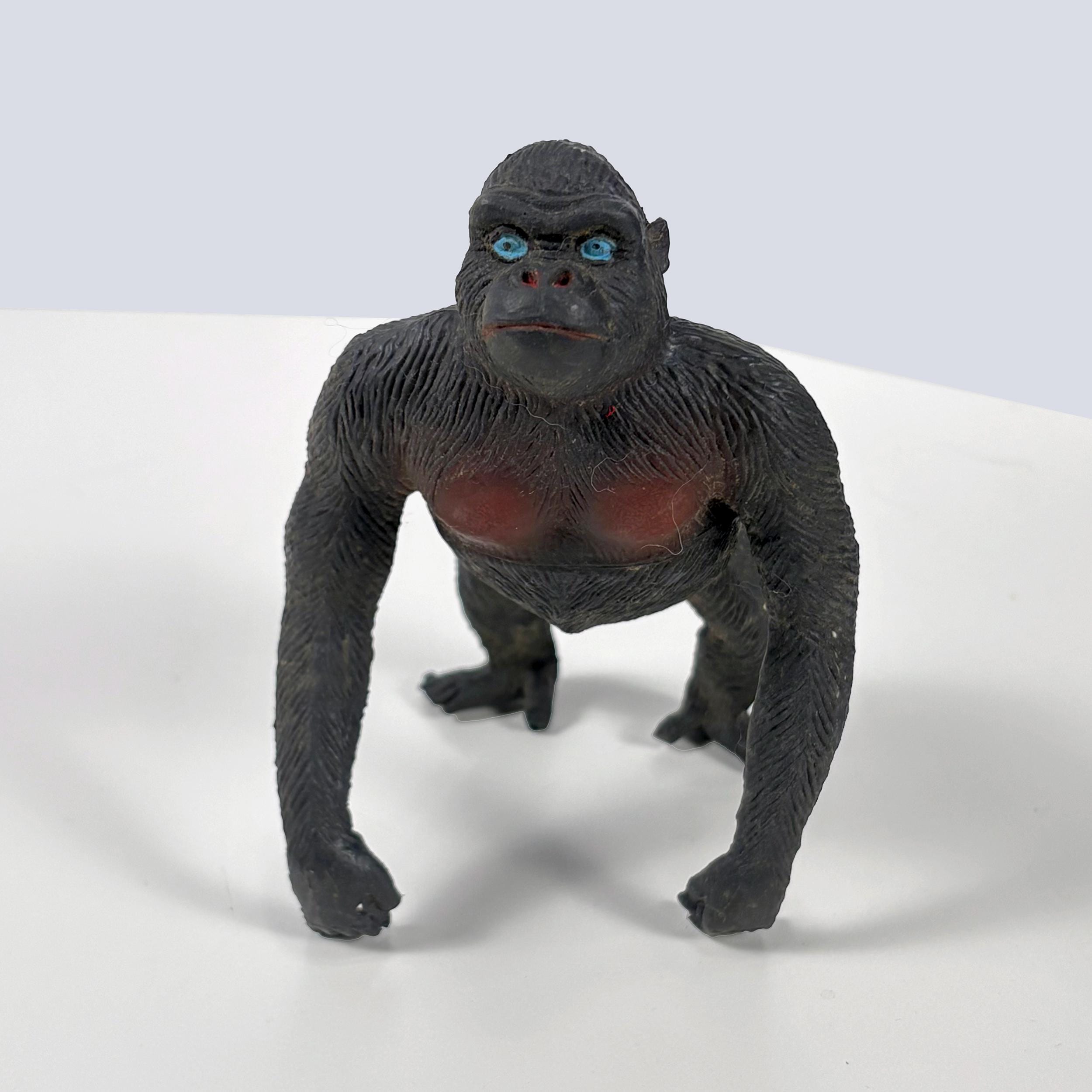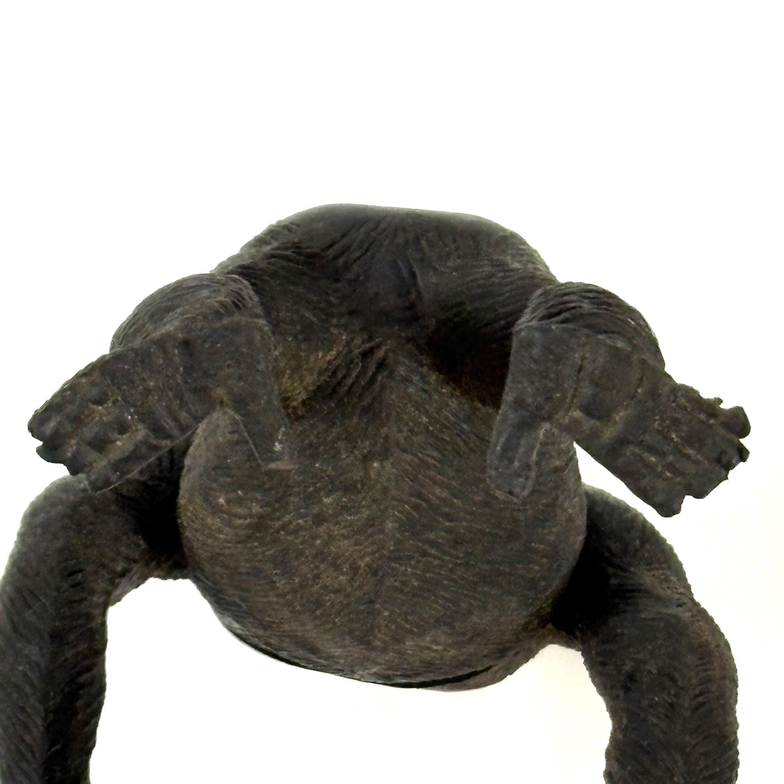 Measures approximately 4.75" tall and 6" long overall. Rubbery black plastic with blue eyes and red painted accents.