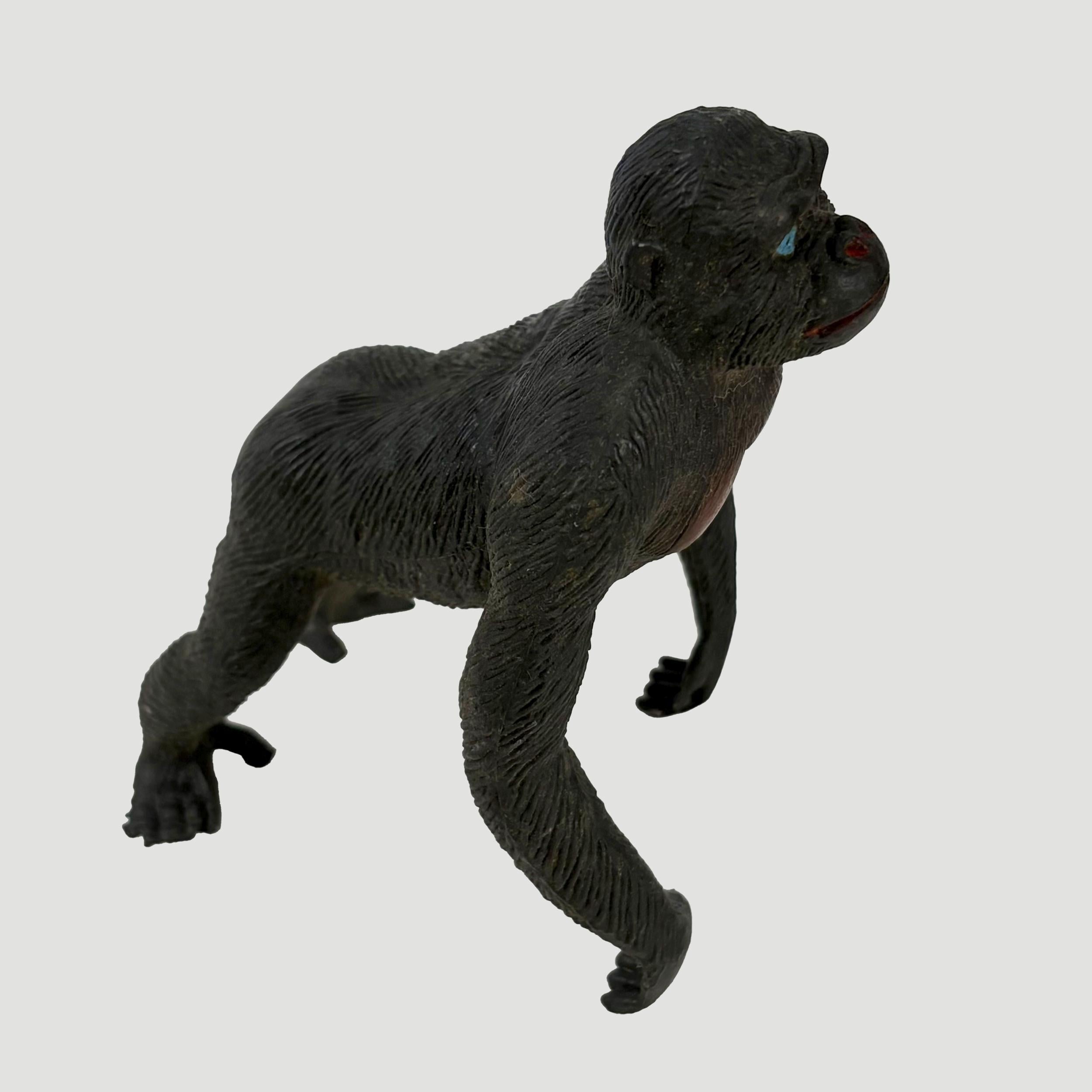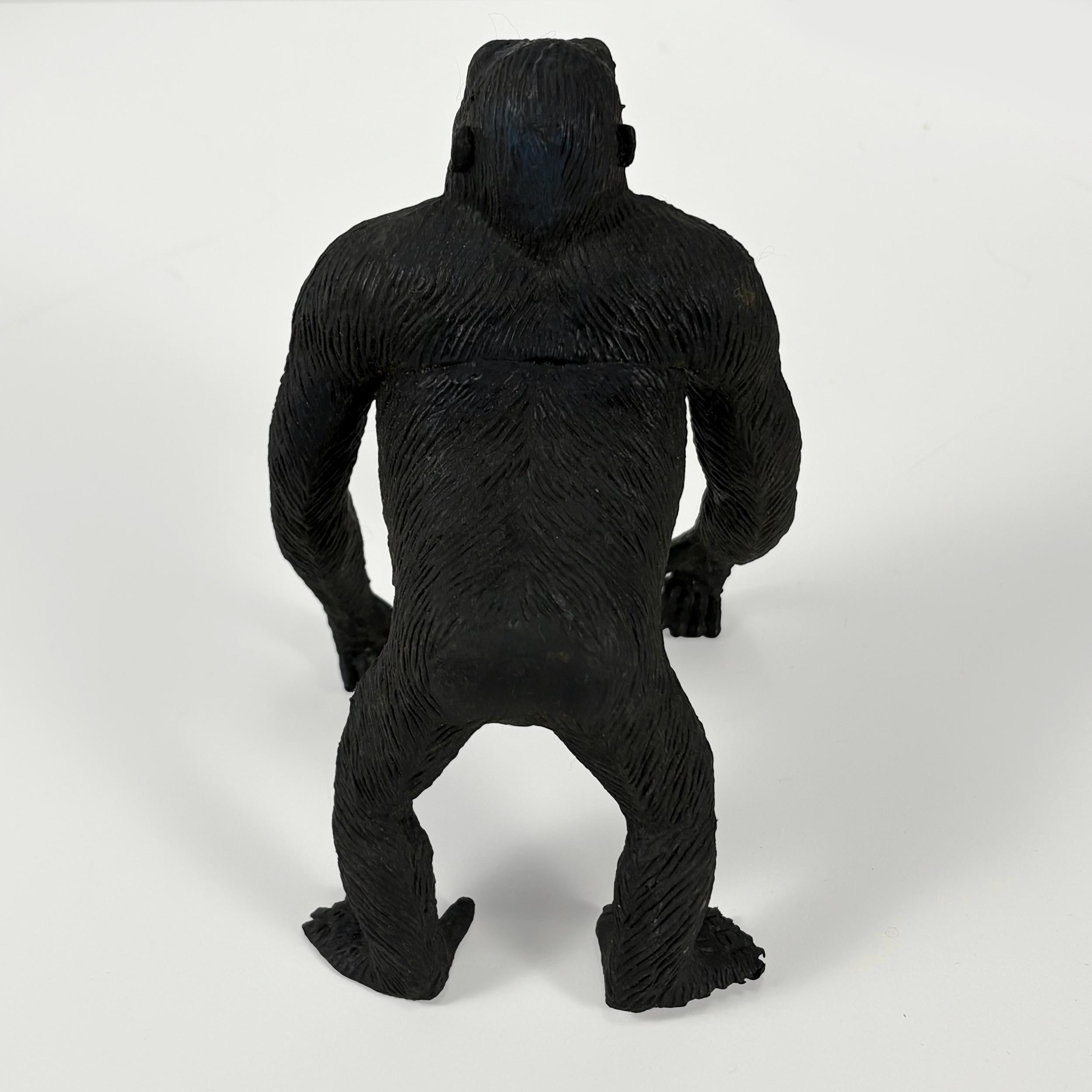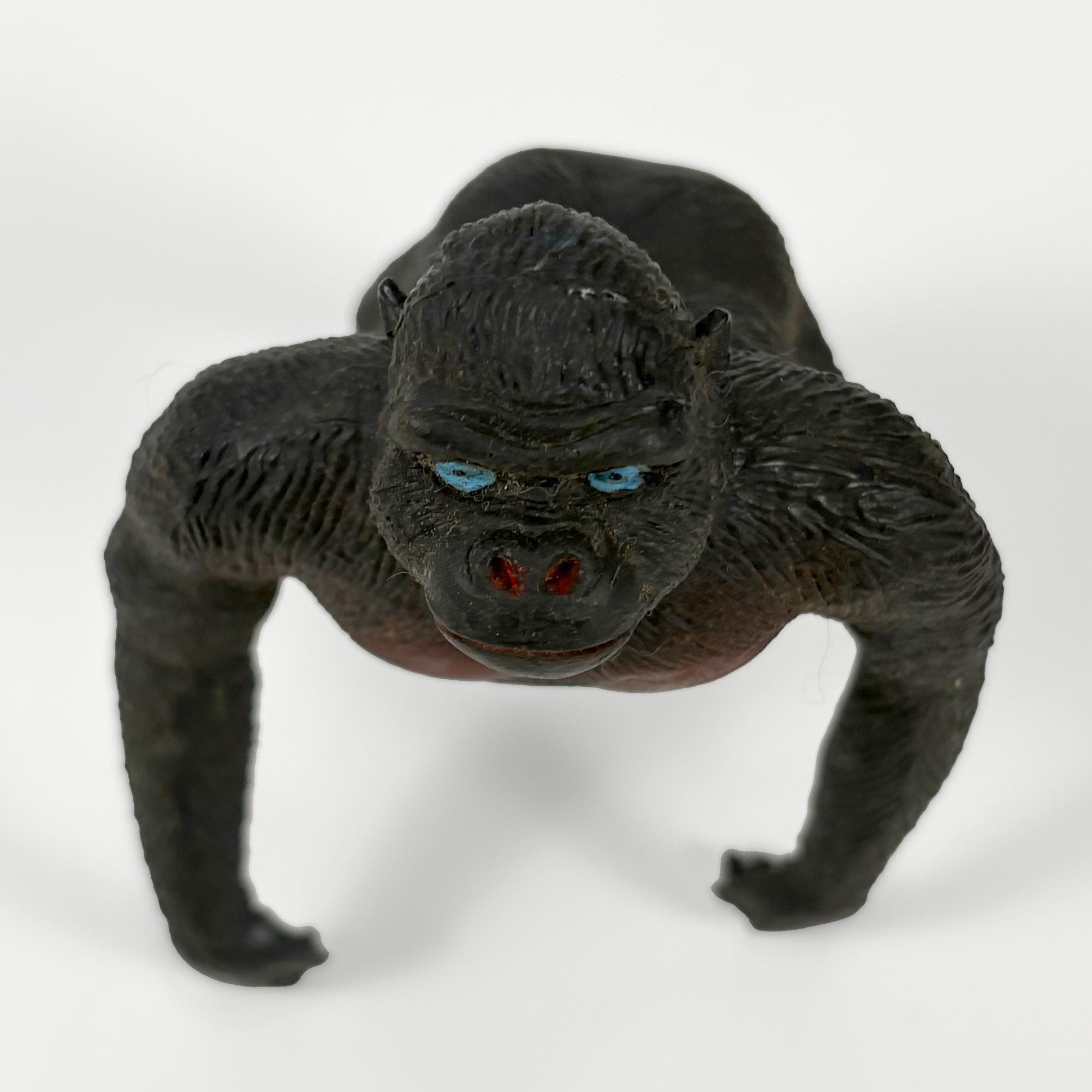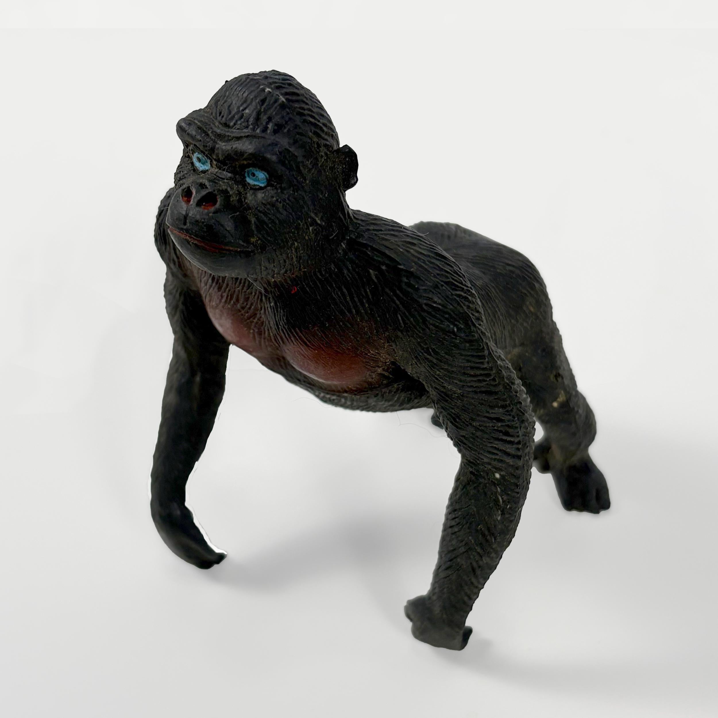 Measures approximately 4.75" tall and 6" long overall. Rubbery black plastic with blue eyes and red painted accents.