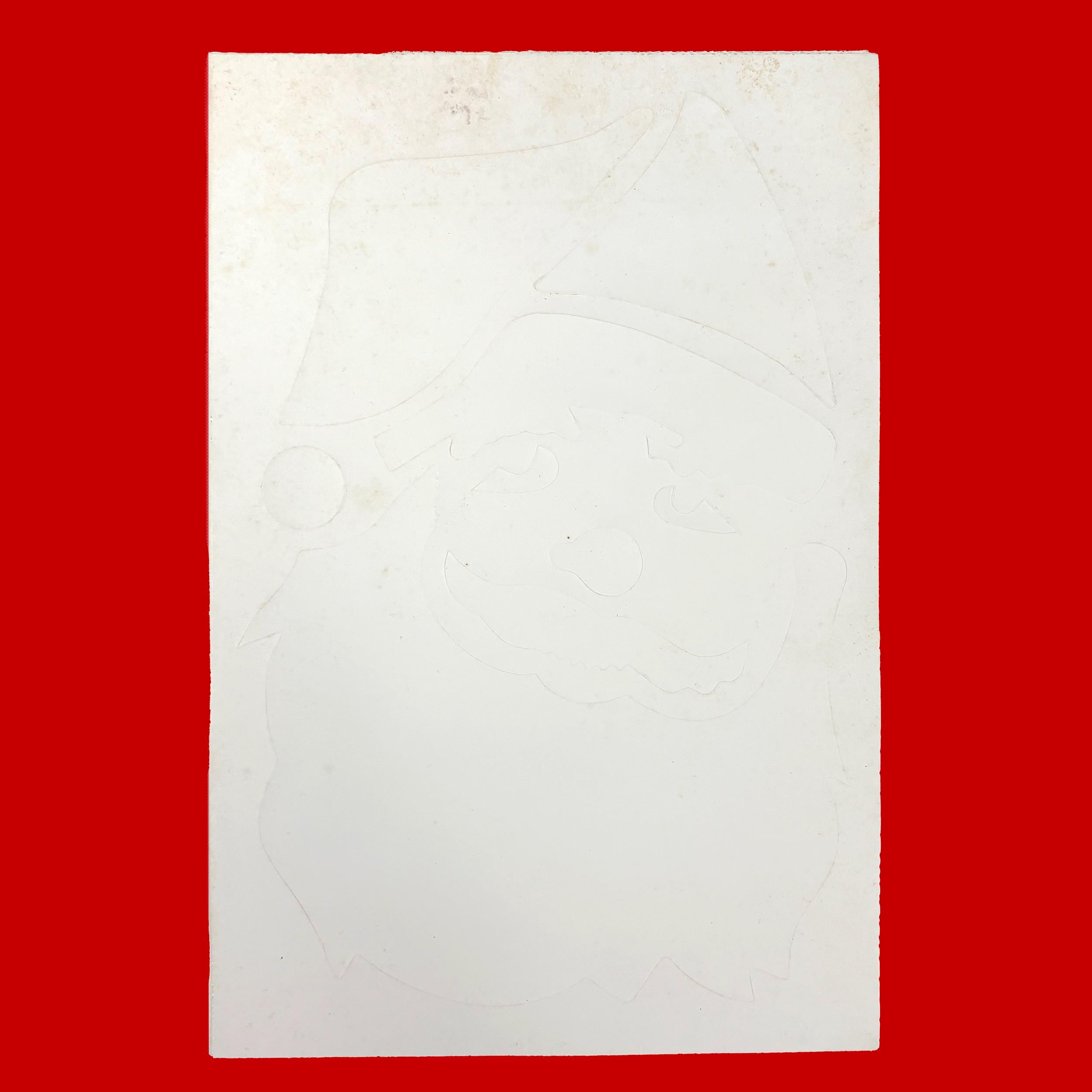 8 plasticized cardstock sheets measuring 8.5" x 12.5" featuring various holiday themed stencils like Santa Claus, snowmen, angels, stockings & bows, etc. Package is opened with some surface wear, ripped seams, etc. But sheets are clean & unused with stencils still unpunched.