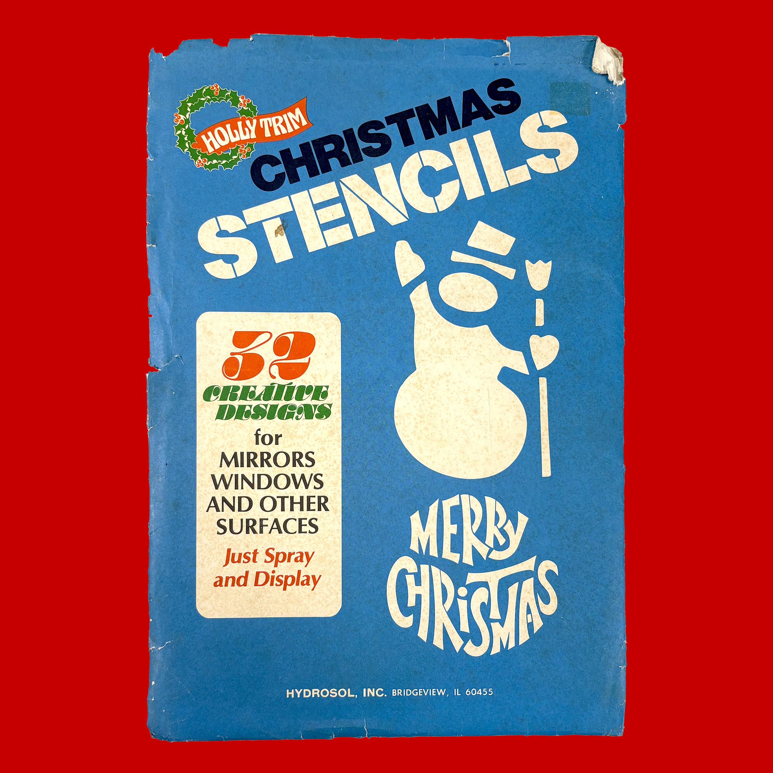 Unused vintage pack of 32 Hydrosol Holly Trim Christmas stencils for decorating windows, mirrors and other surfaces.