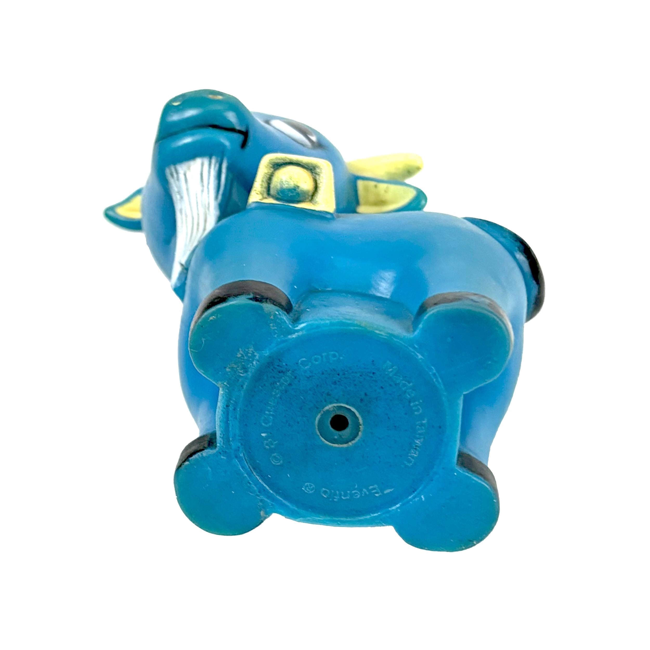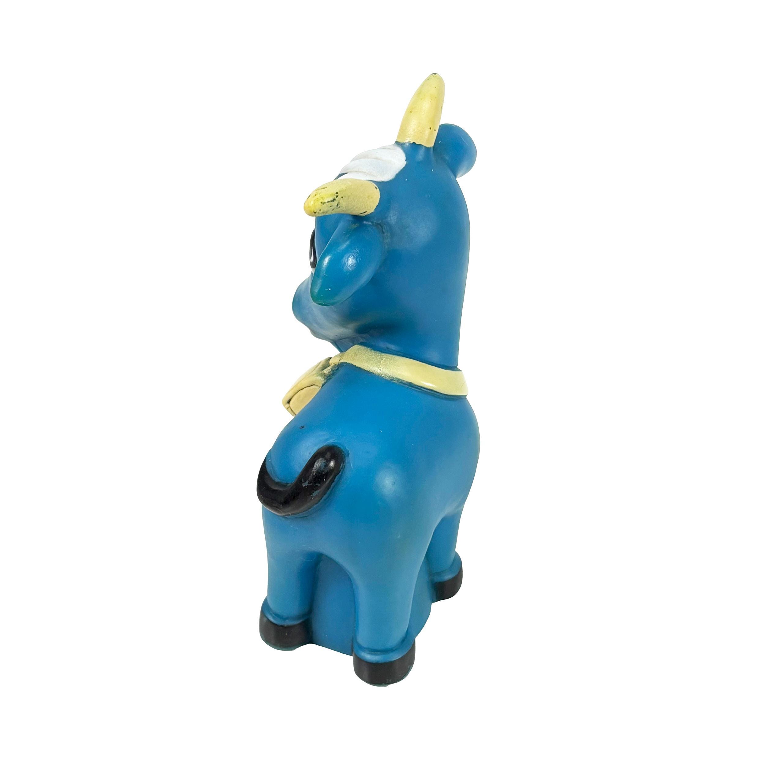 In great vintage condition. Some minor paint rubs and surface stains but no more notable damage. Rubbery hard plastic, still supple enough to squeeze easily and still squeaky.
