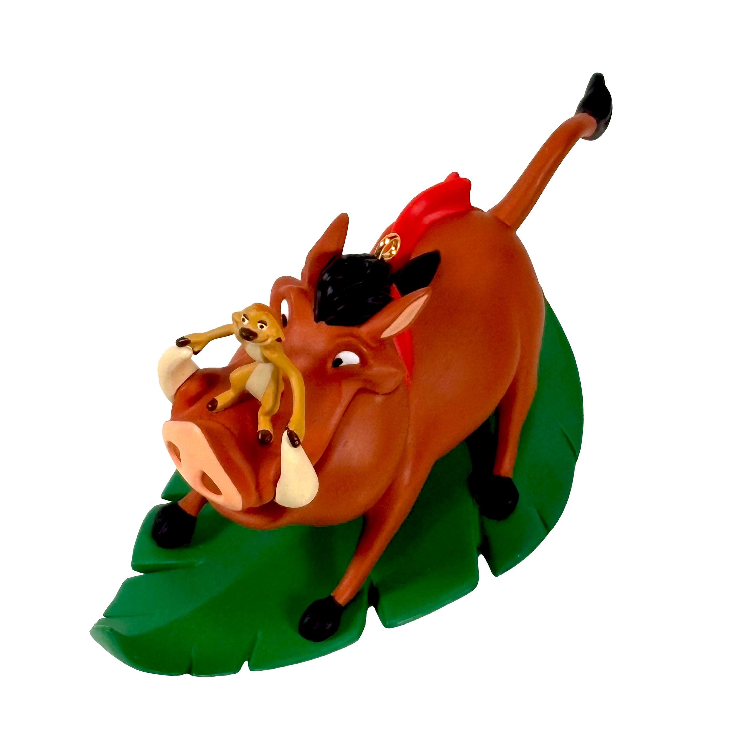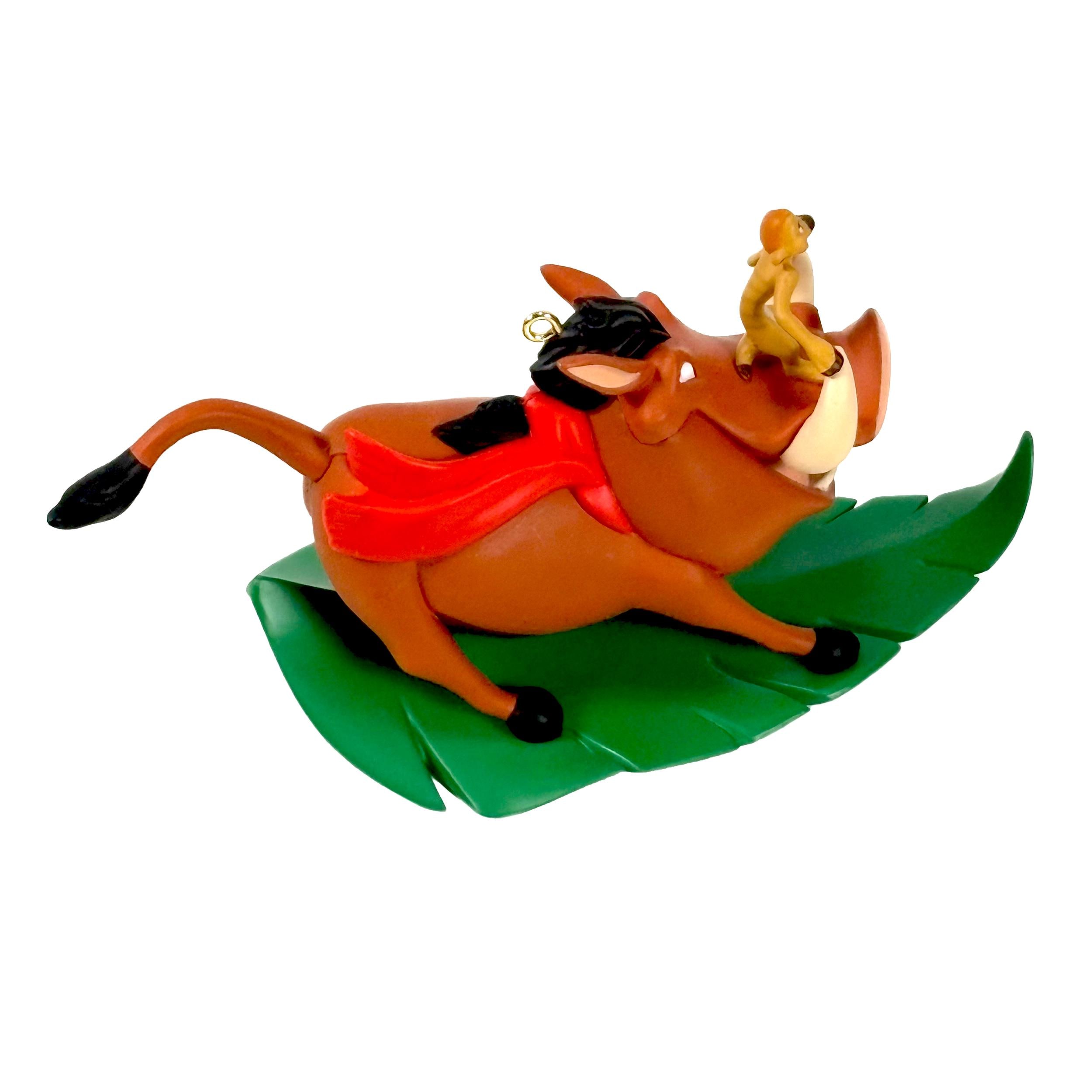 Vintage Disney's The Lion King Grolier President's Edition Pumbaa & Timon on leaf holiday ornament