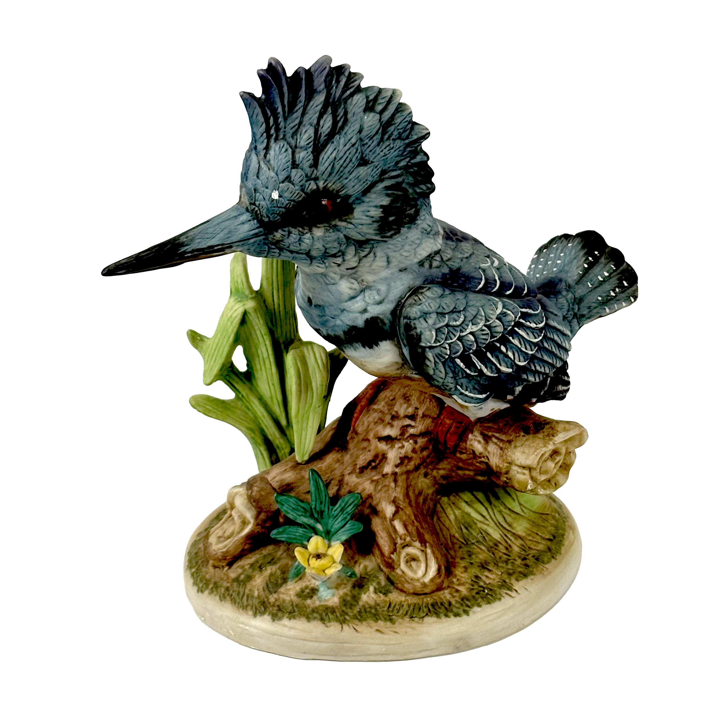 Beautiful life-size, matte porcelain Kingfisher statue by J. Byron.