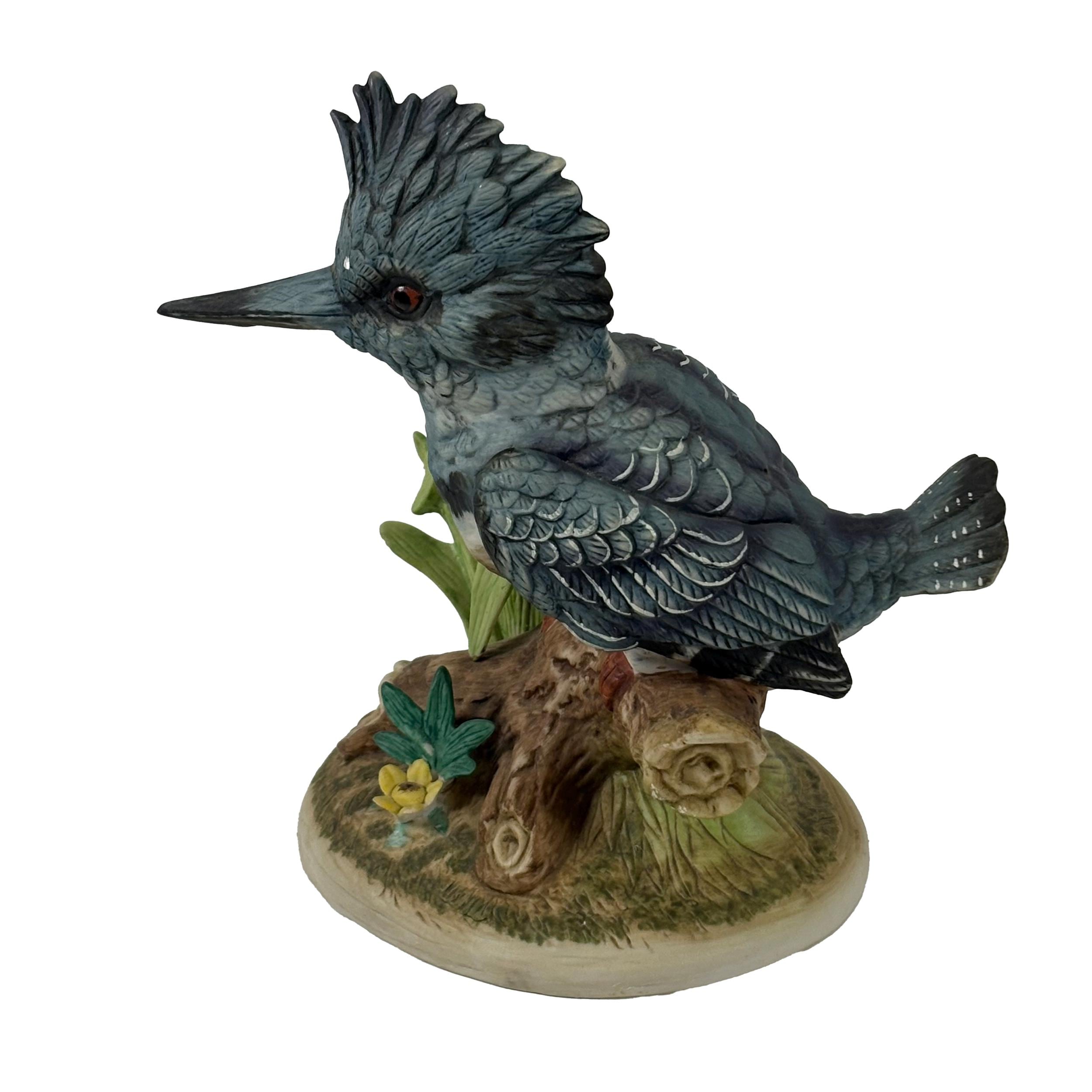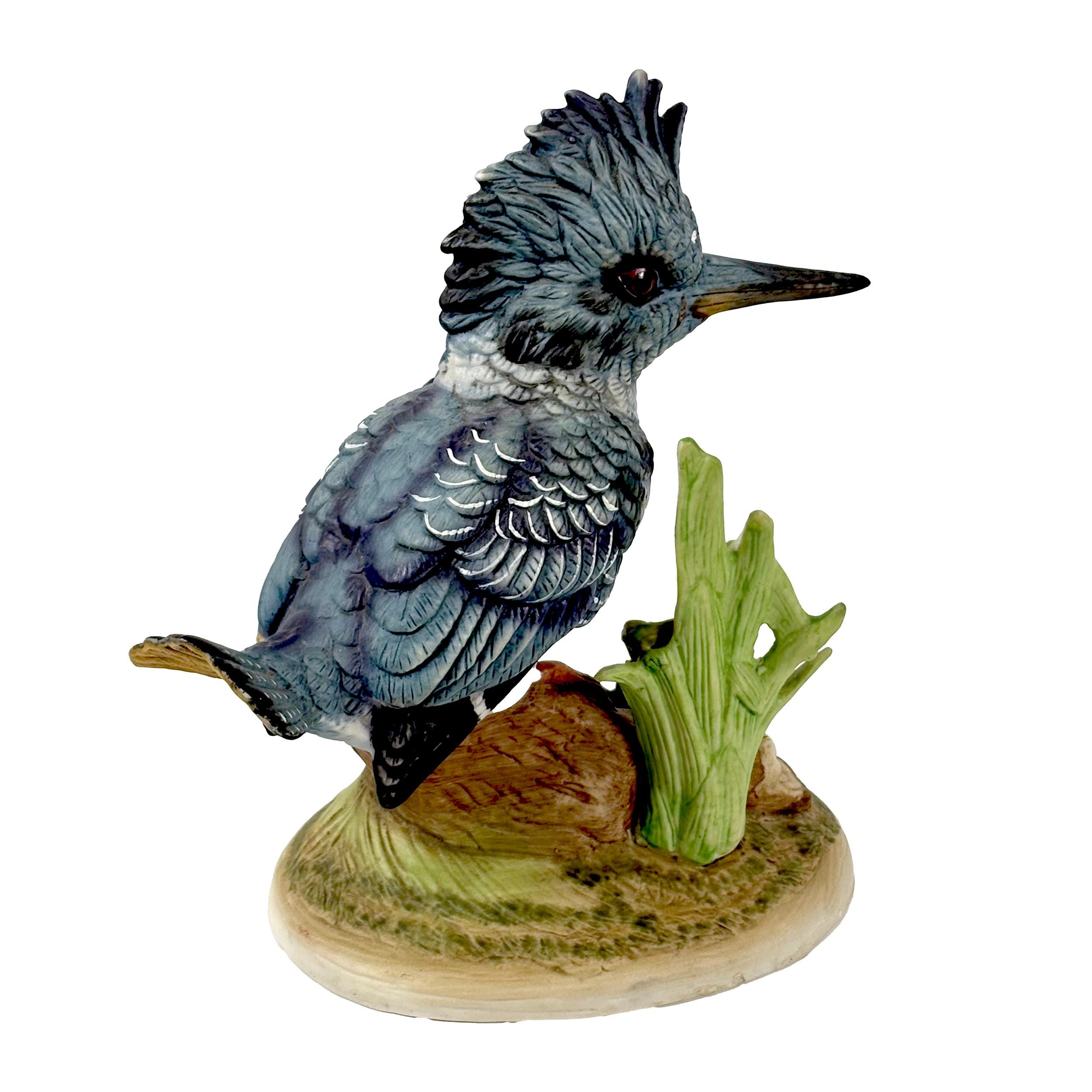 Rare Life-Size Kingfisher Figurine, Matte Porcelain, Signed J. Byron 1984
