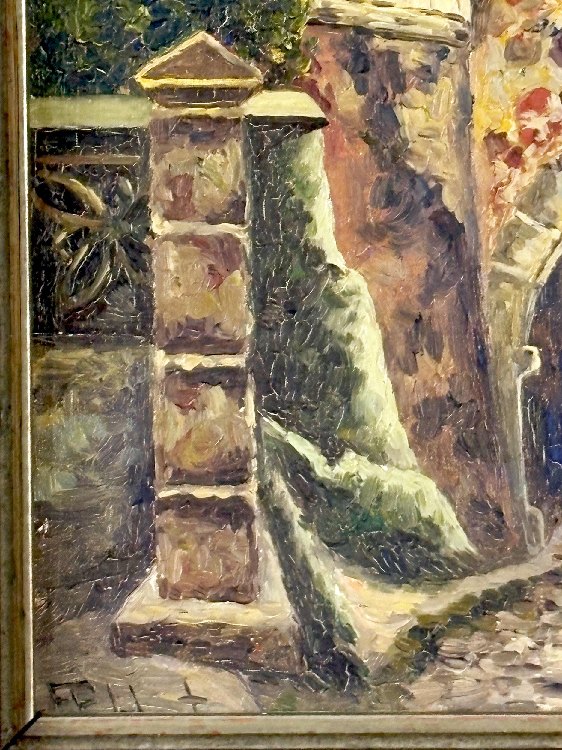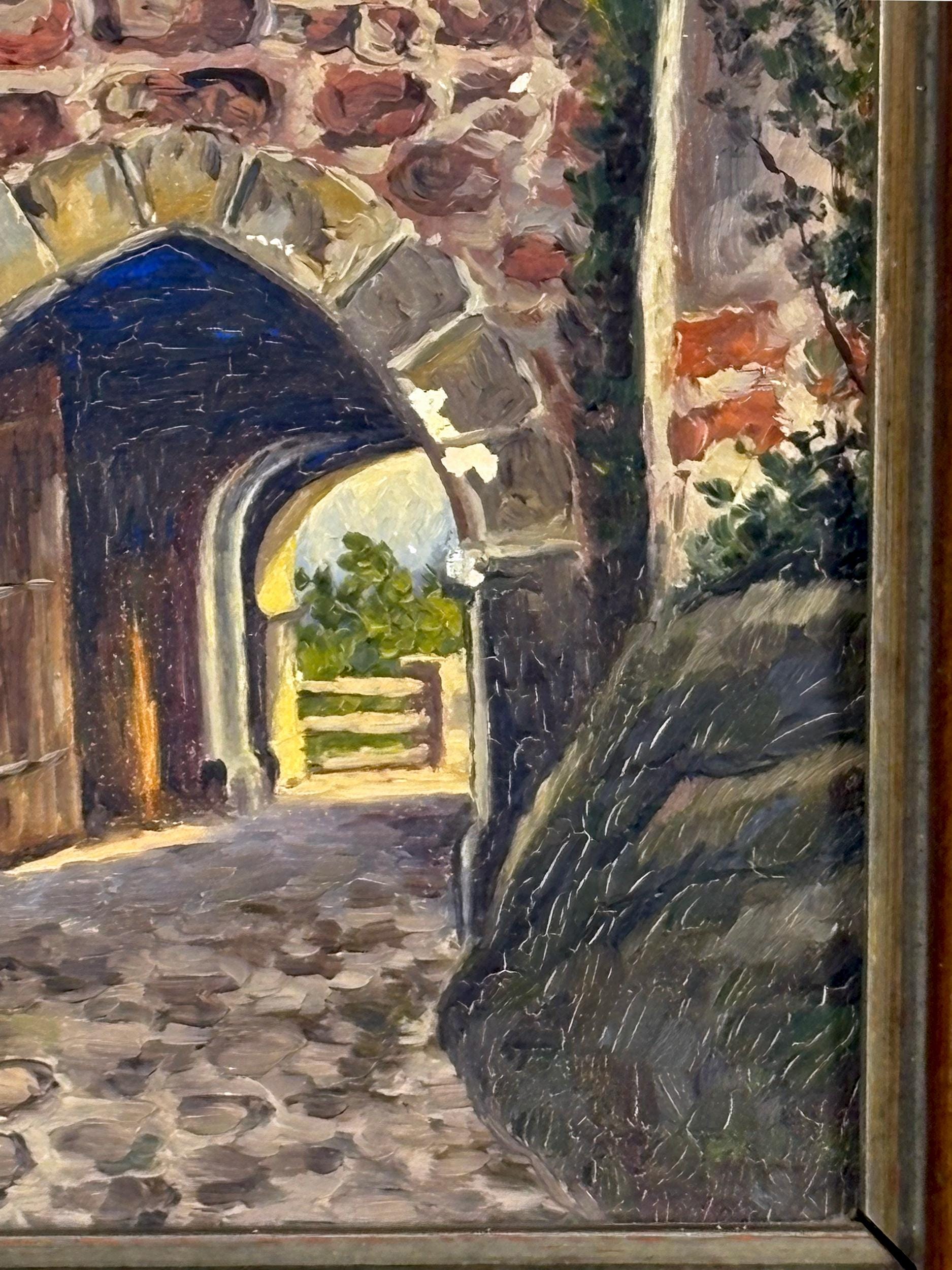 The site appears to have been a somewhat popular location for artists studying in the area during the start of the 20th century. Though similar to some others that crop up online from time to time on postcards & such, it's worth noting that this one is unique, an original painting not a print, much more detailed than most and very skillfully rendered.