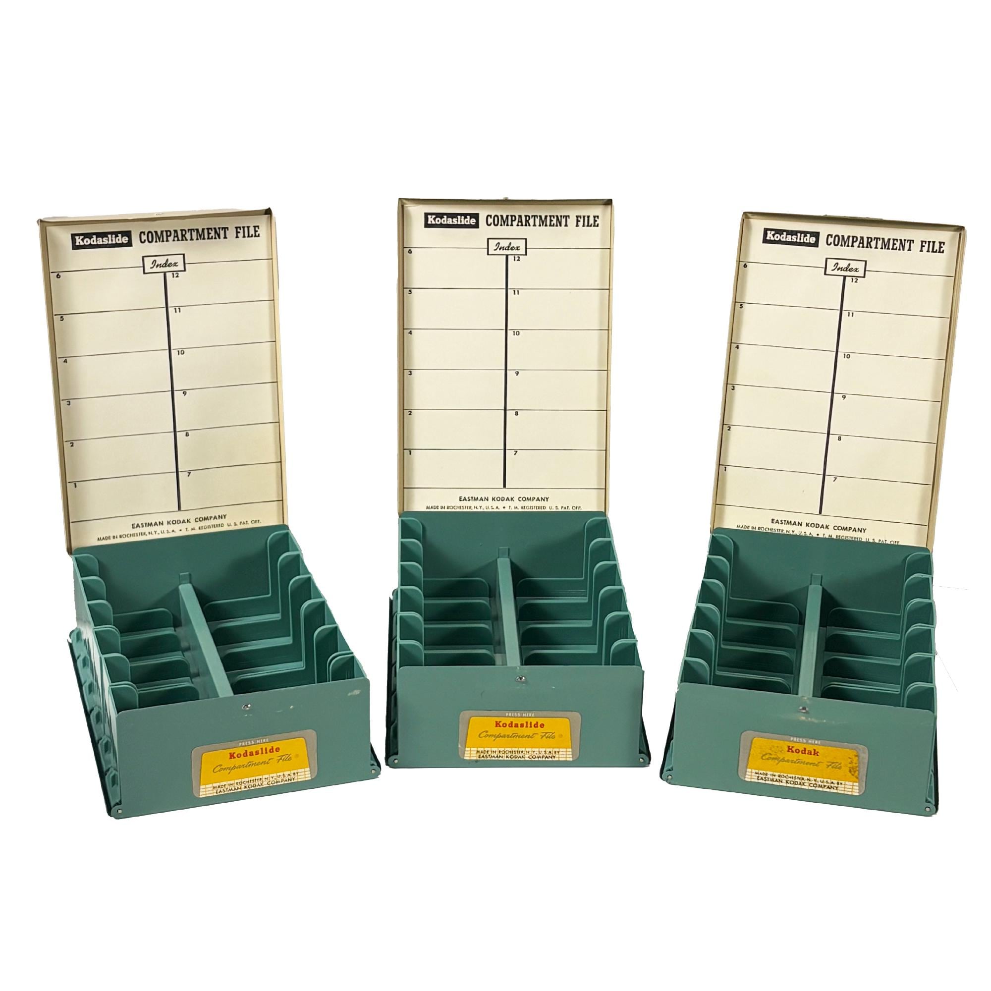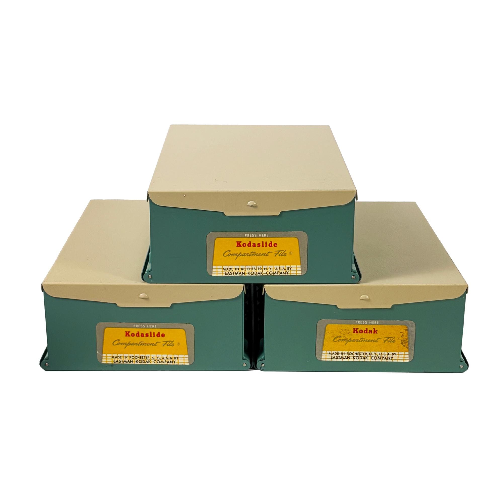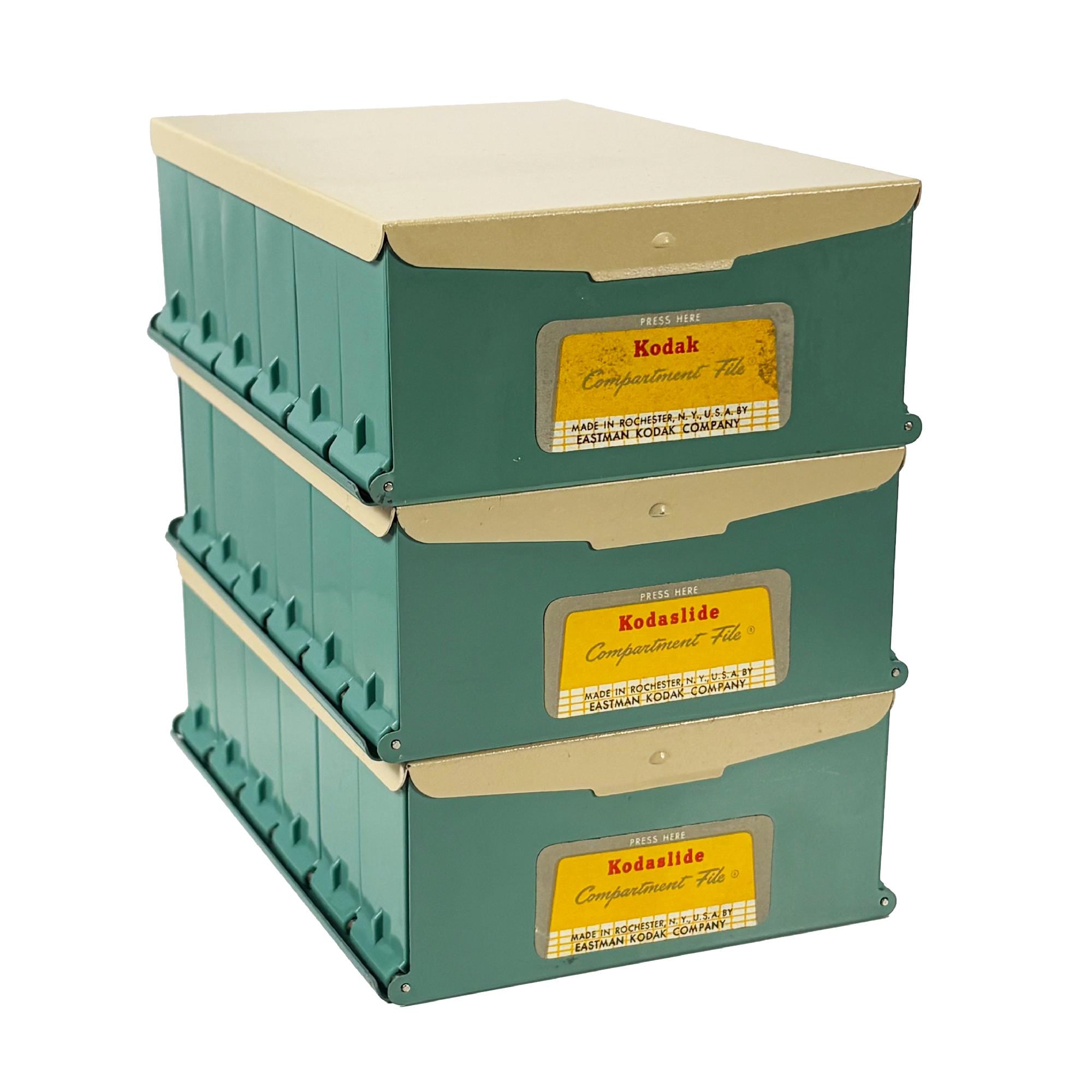 Vintage Eastman Kodak Kodaslide metal compartment file box for 35mm slides.