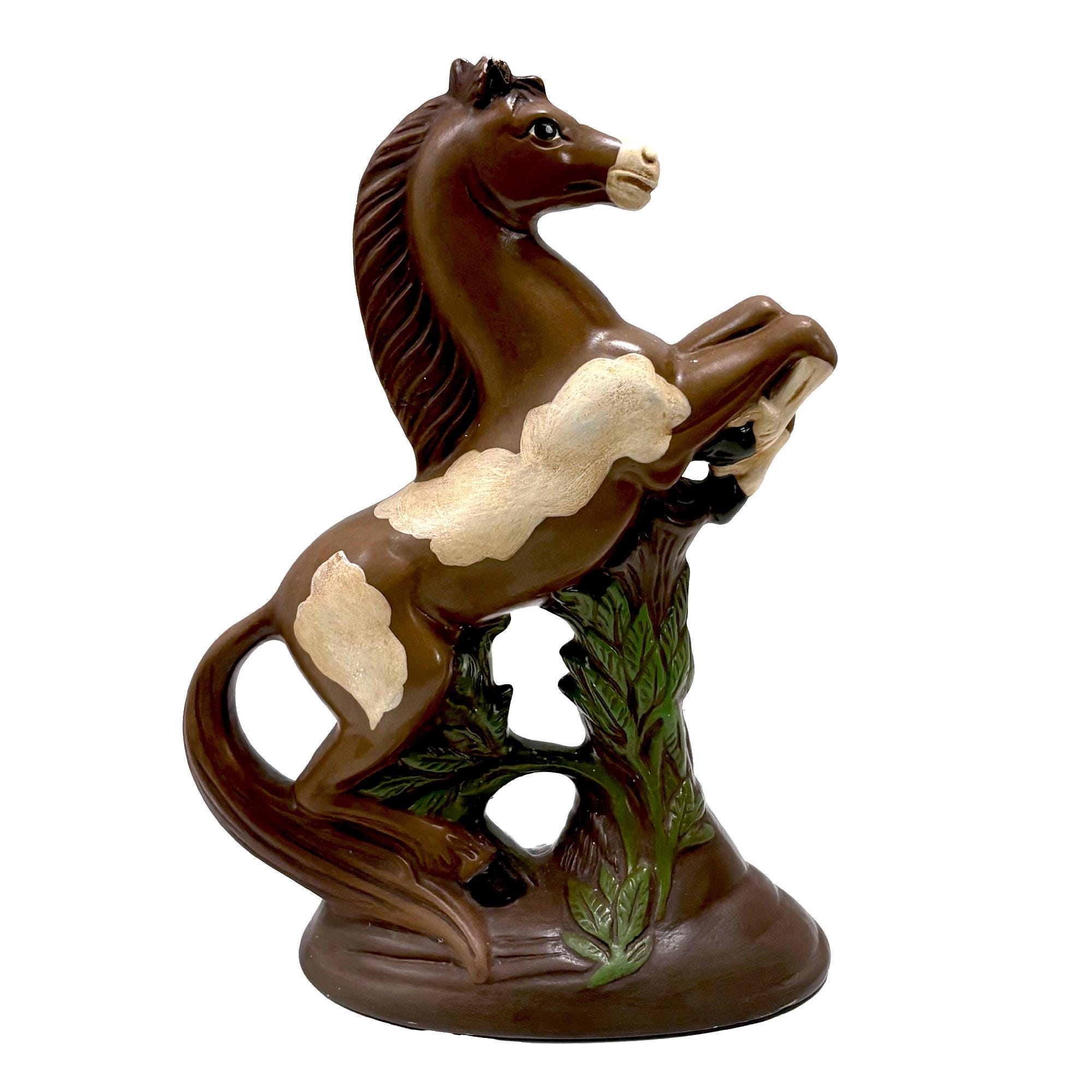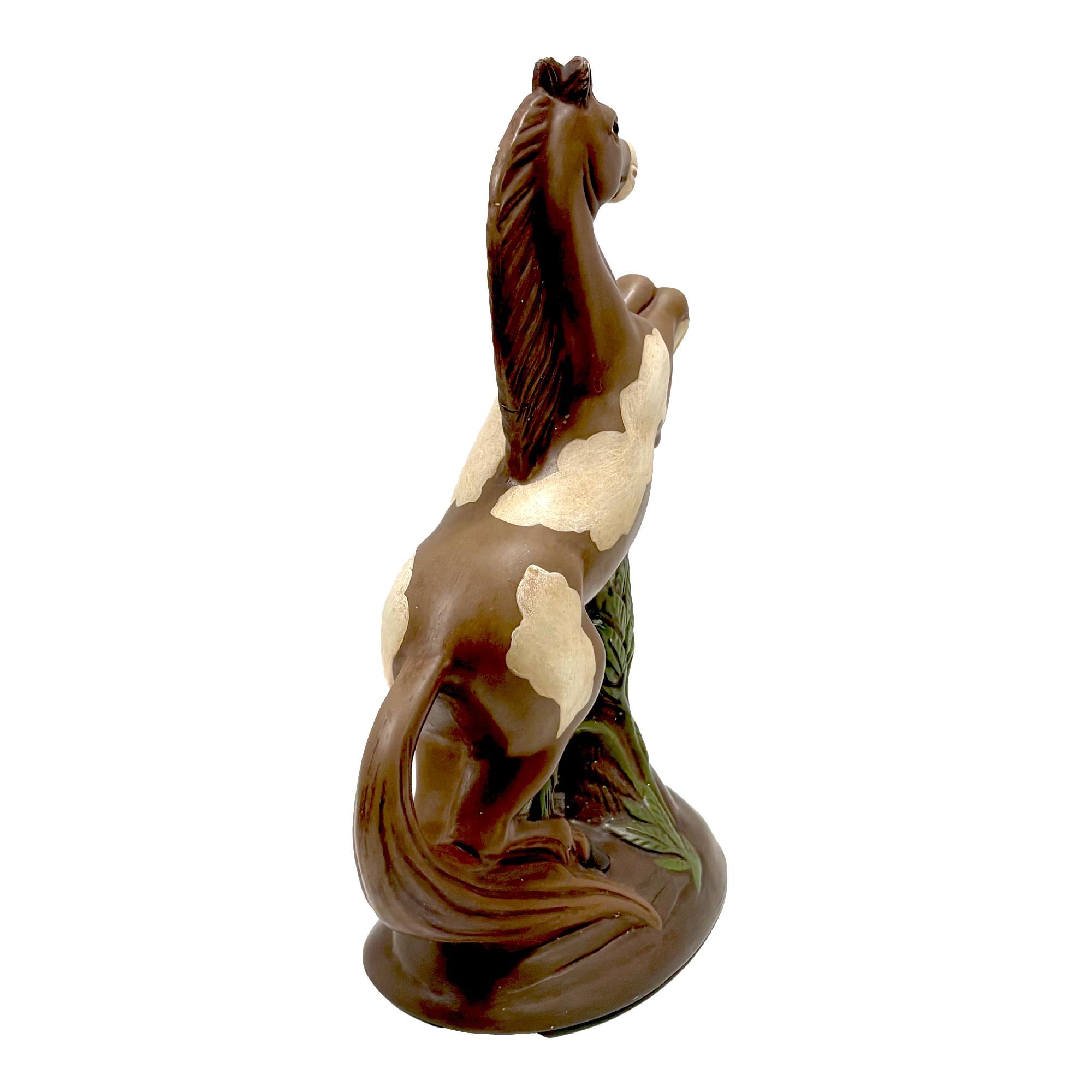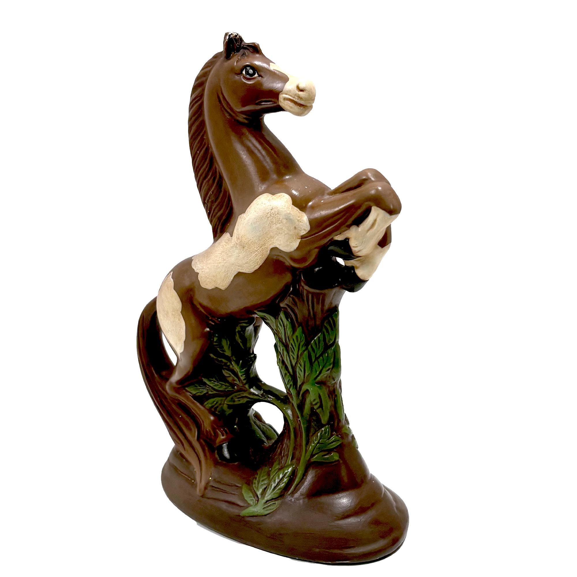 Mid-century vintage ceramic or chalkware pinto horse statuette. Stands about 10.5" tall and 8" x 3.5"