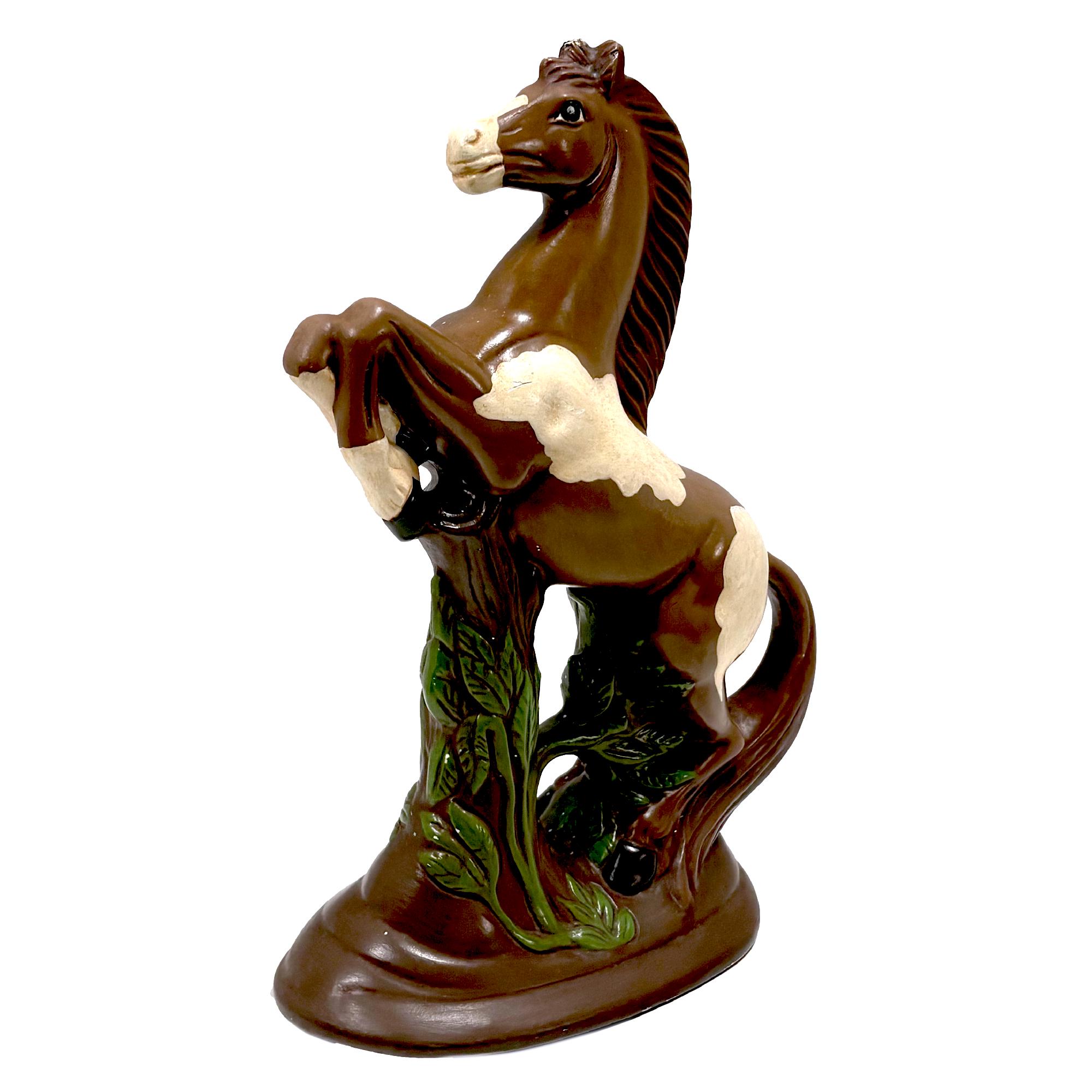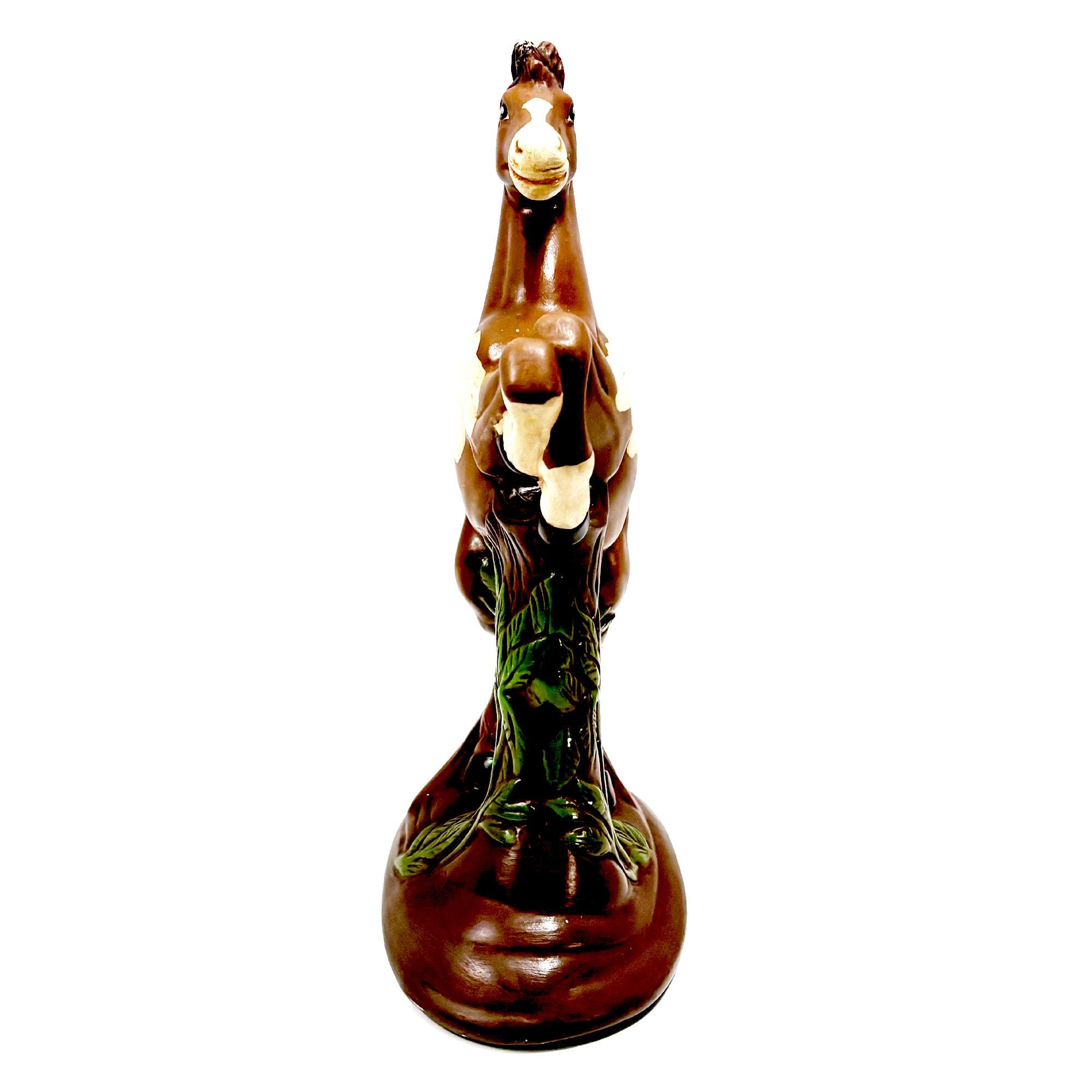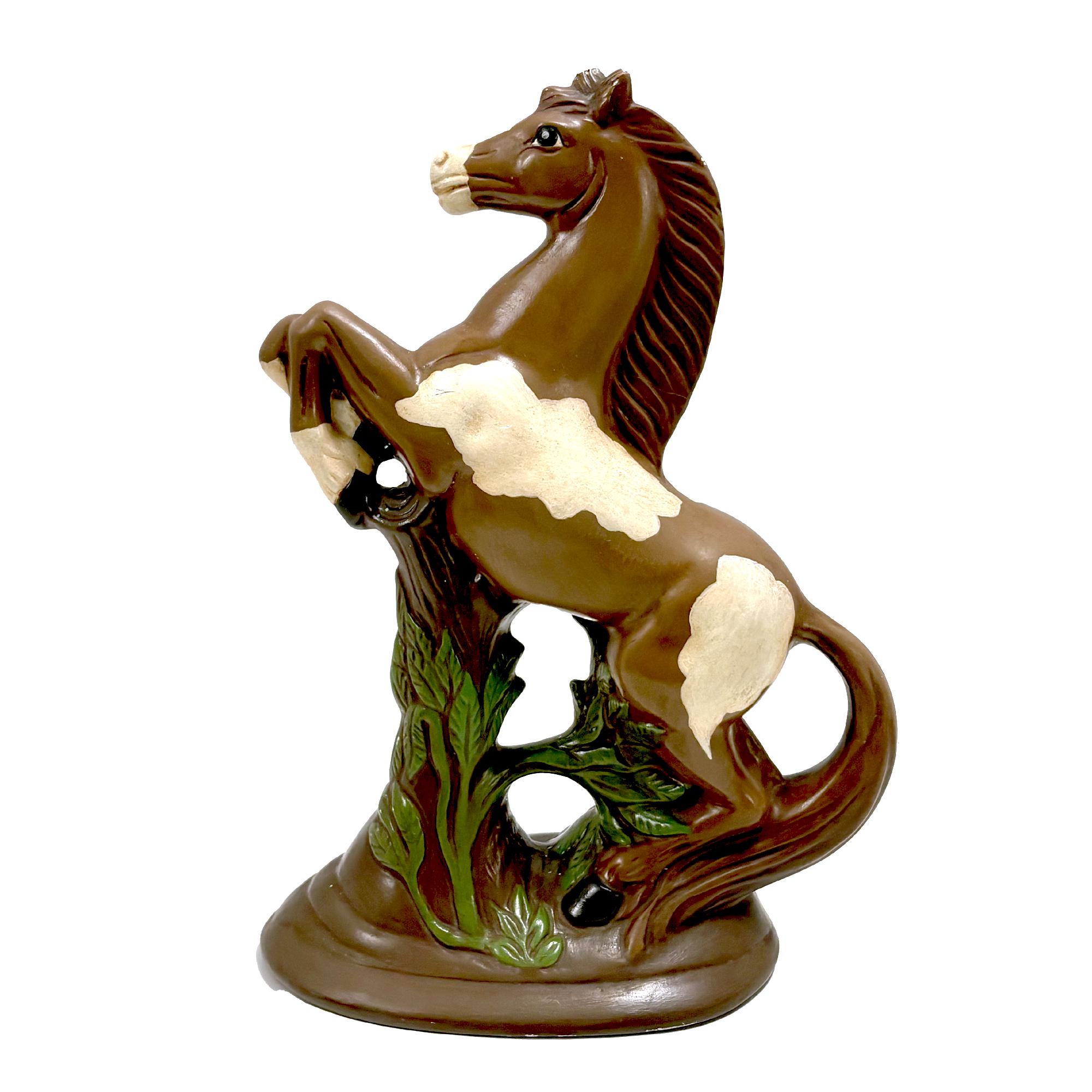Mid-century vintage ceramic or chalkware pinto horse statuette. Stands about 10.5" tall and 8" x 3.5"