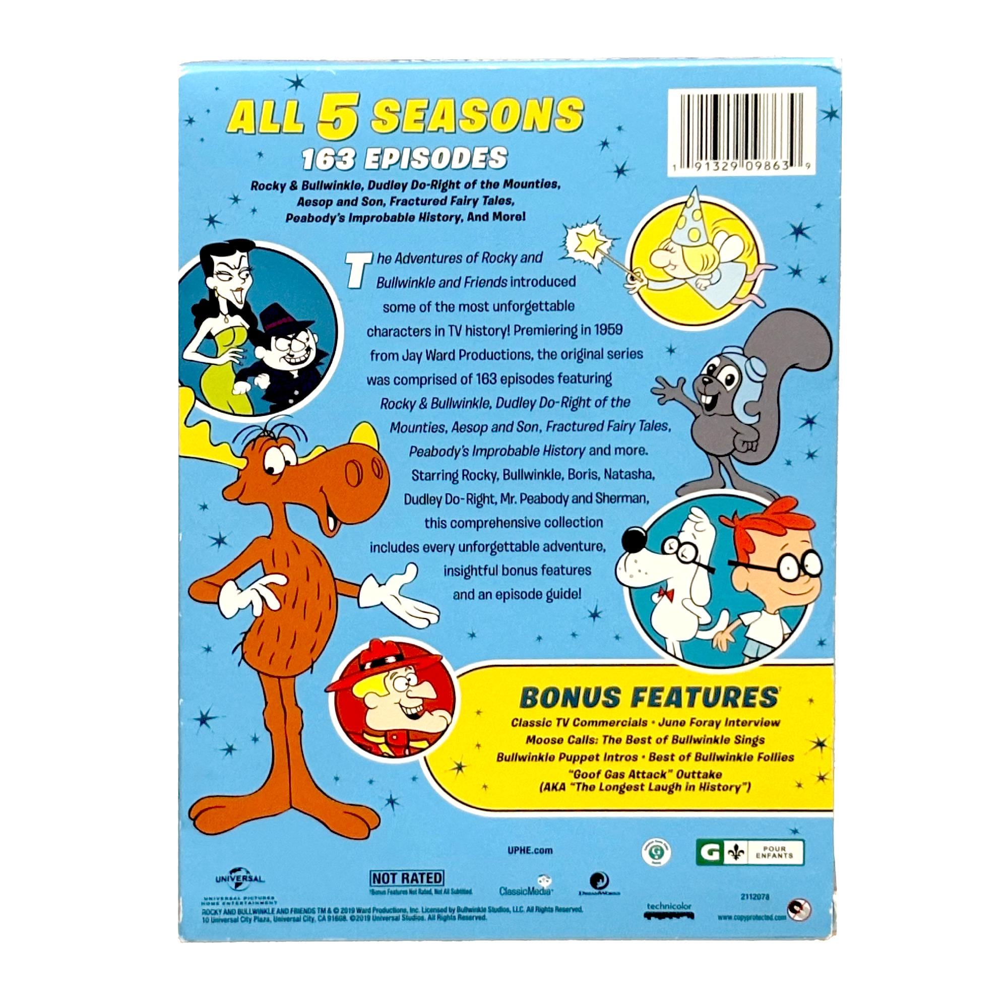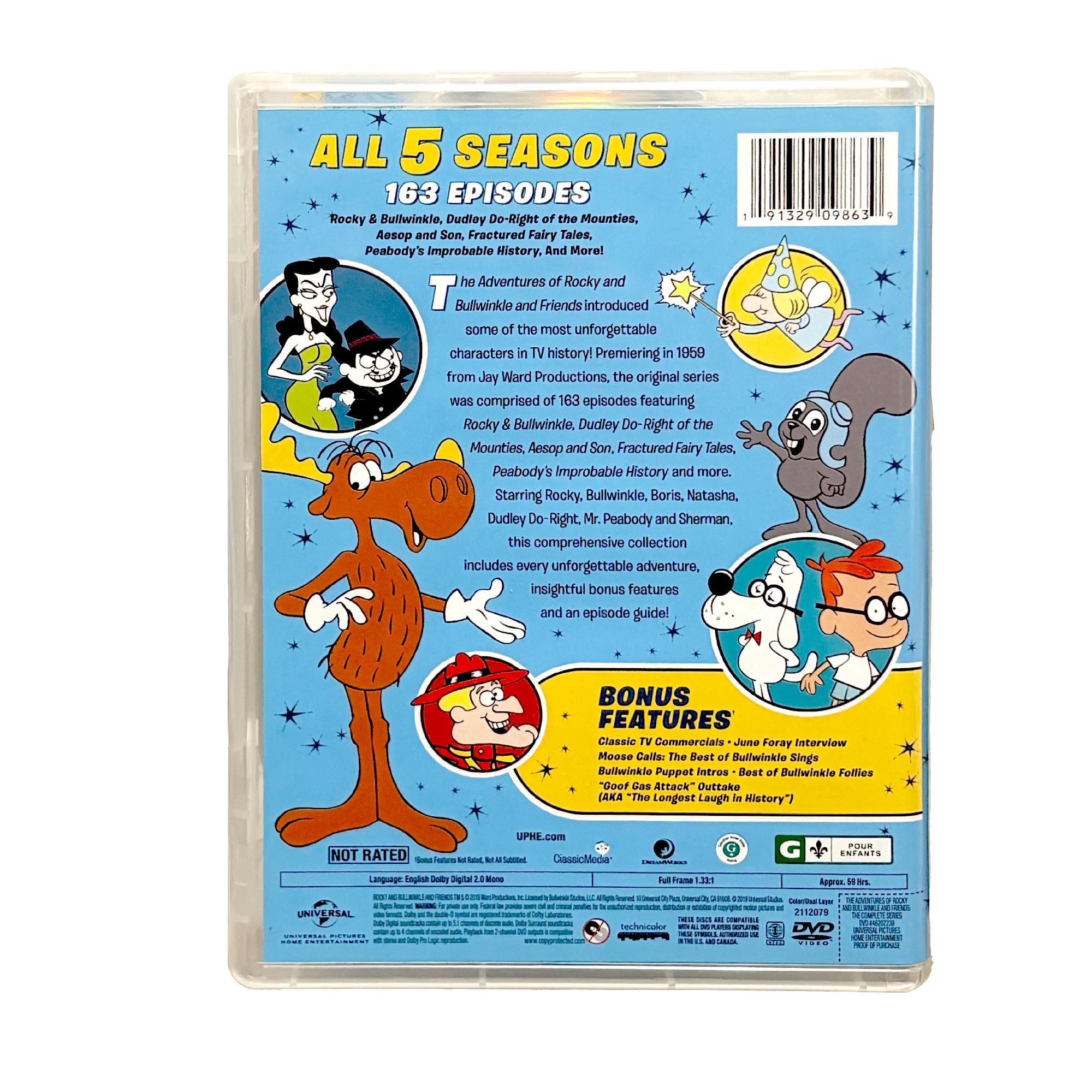 The Adventures of Rocky and Bullwinkle and Friends: The Complete Series, 18 disc DVD box set. Unrated, region-free NTSC, 163 Episodes, just under 62 hours!