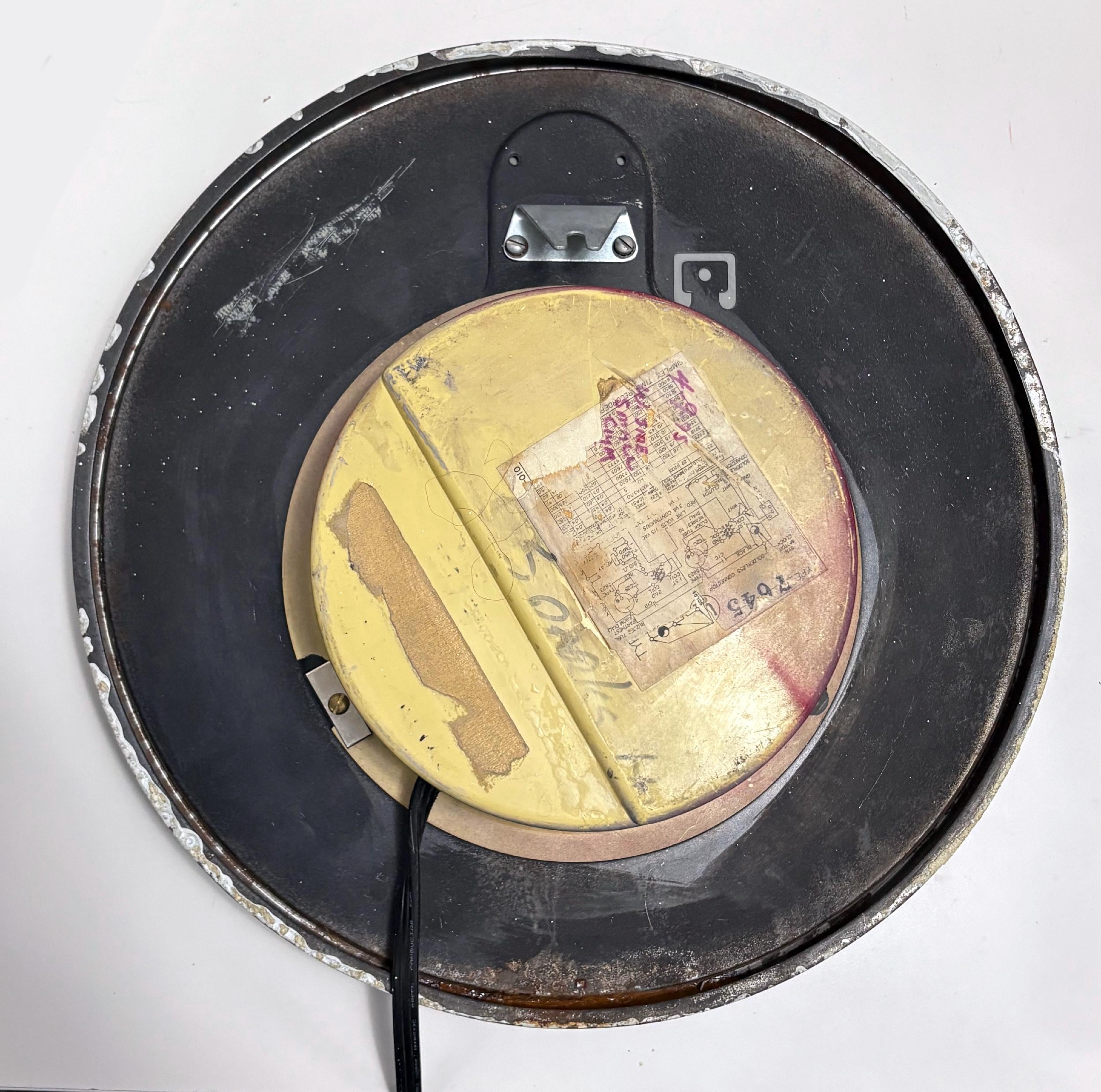 In beautiful shape, very clean and in good working order. Glass is free of chips, cracks or scratches. There isn't a way to manually set the clock as this model was a 'slave' clock meant to be synchronized to a master controller. Some remainders of paint and notations on the reverse. See images.
