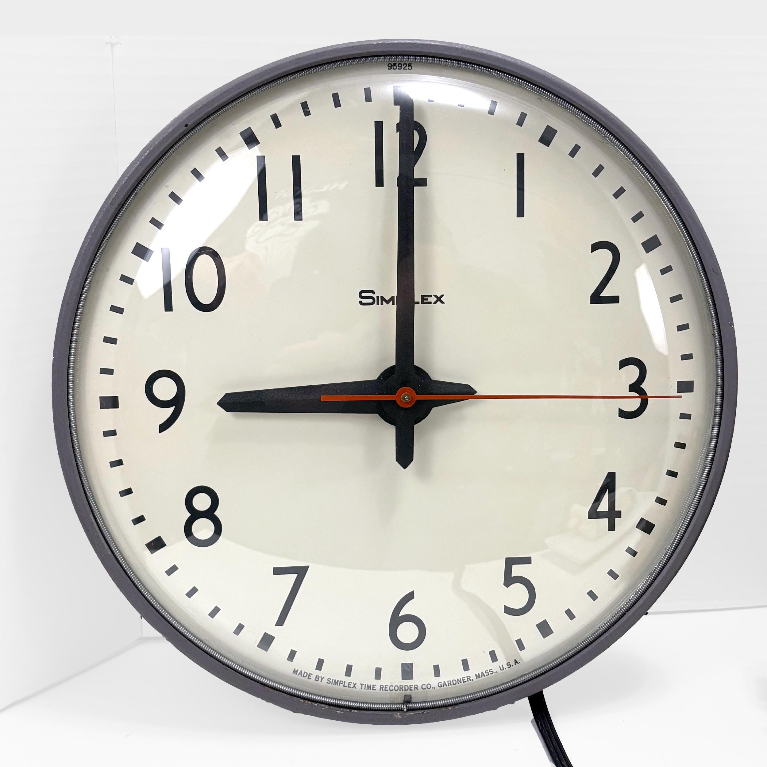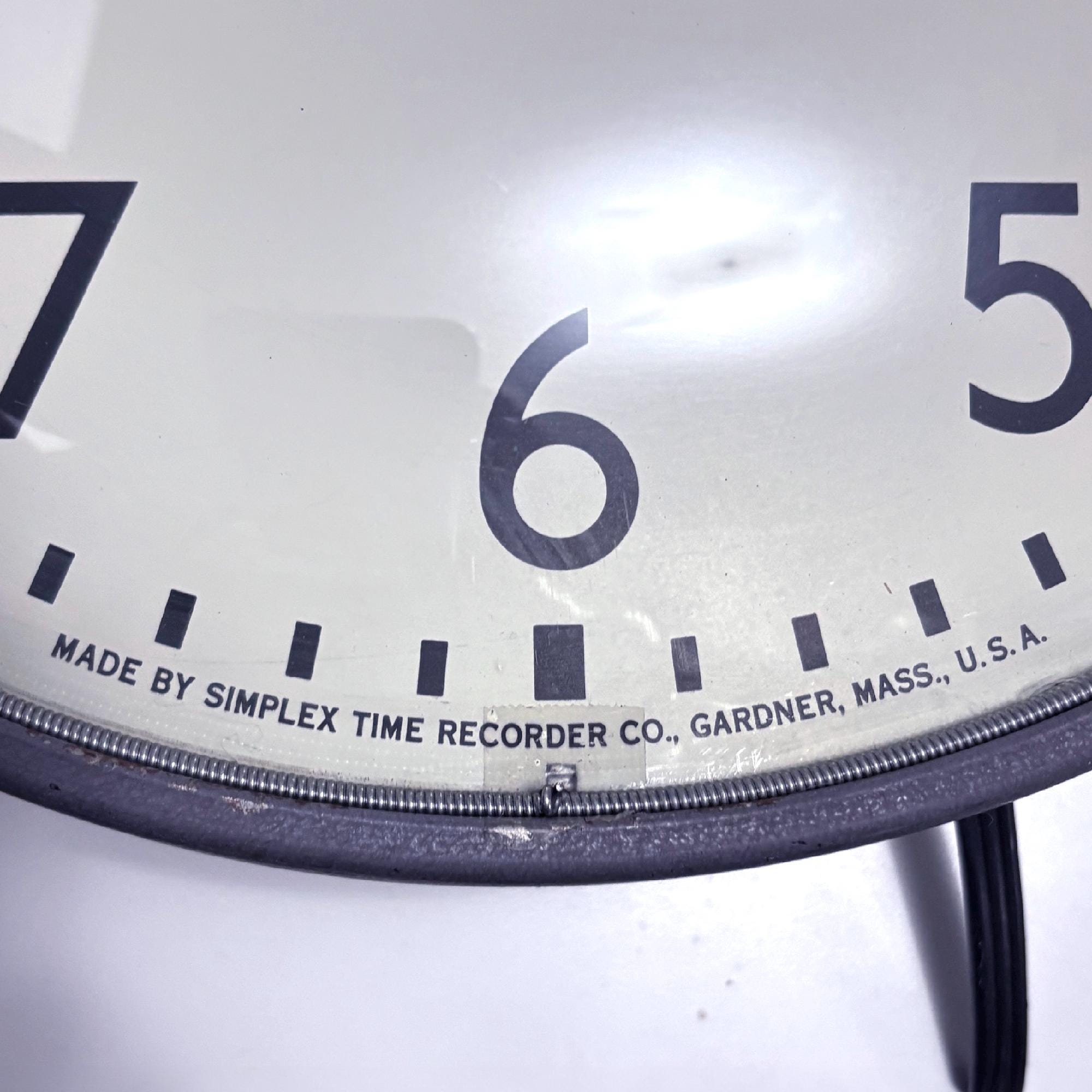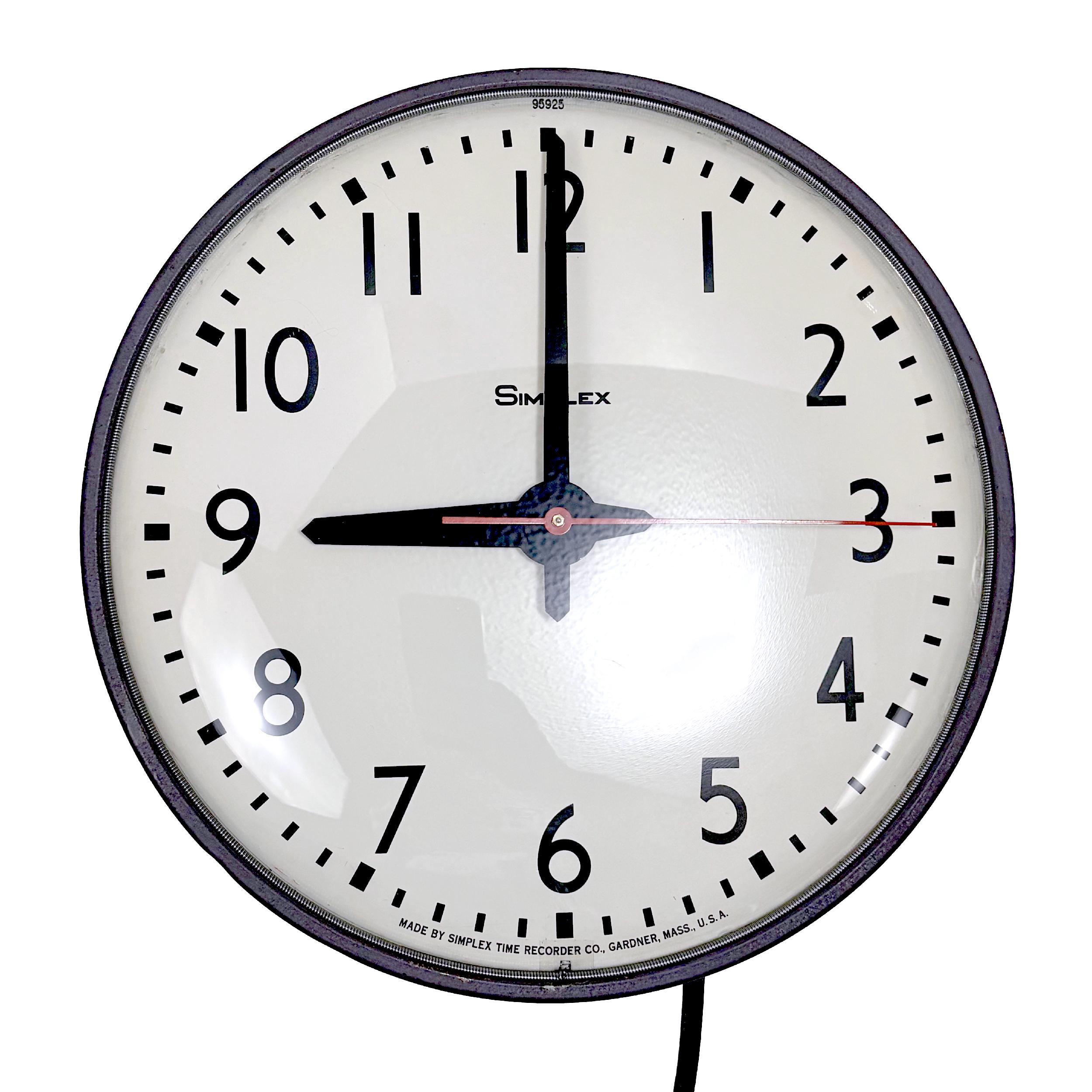 Vintage 13" IBM/Simplex model 95925 industrial wall clock manufactured by the Simplex Time Recorder Co. of Gardner, Massachusetts.