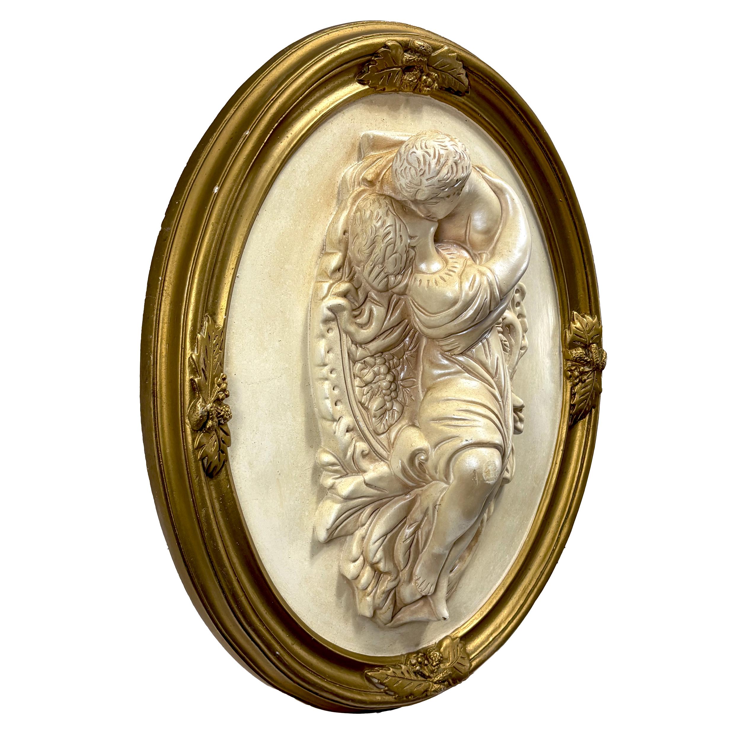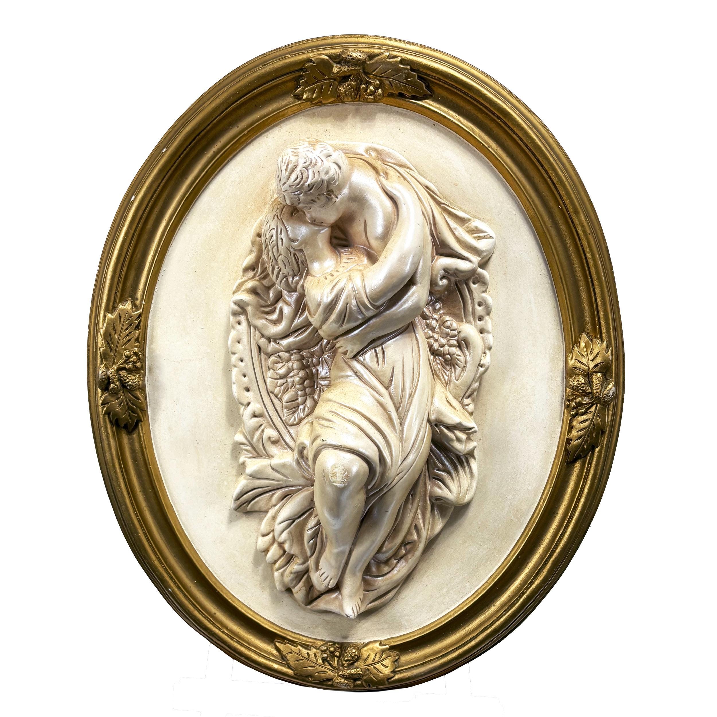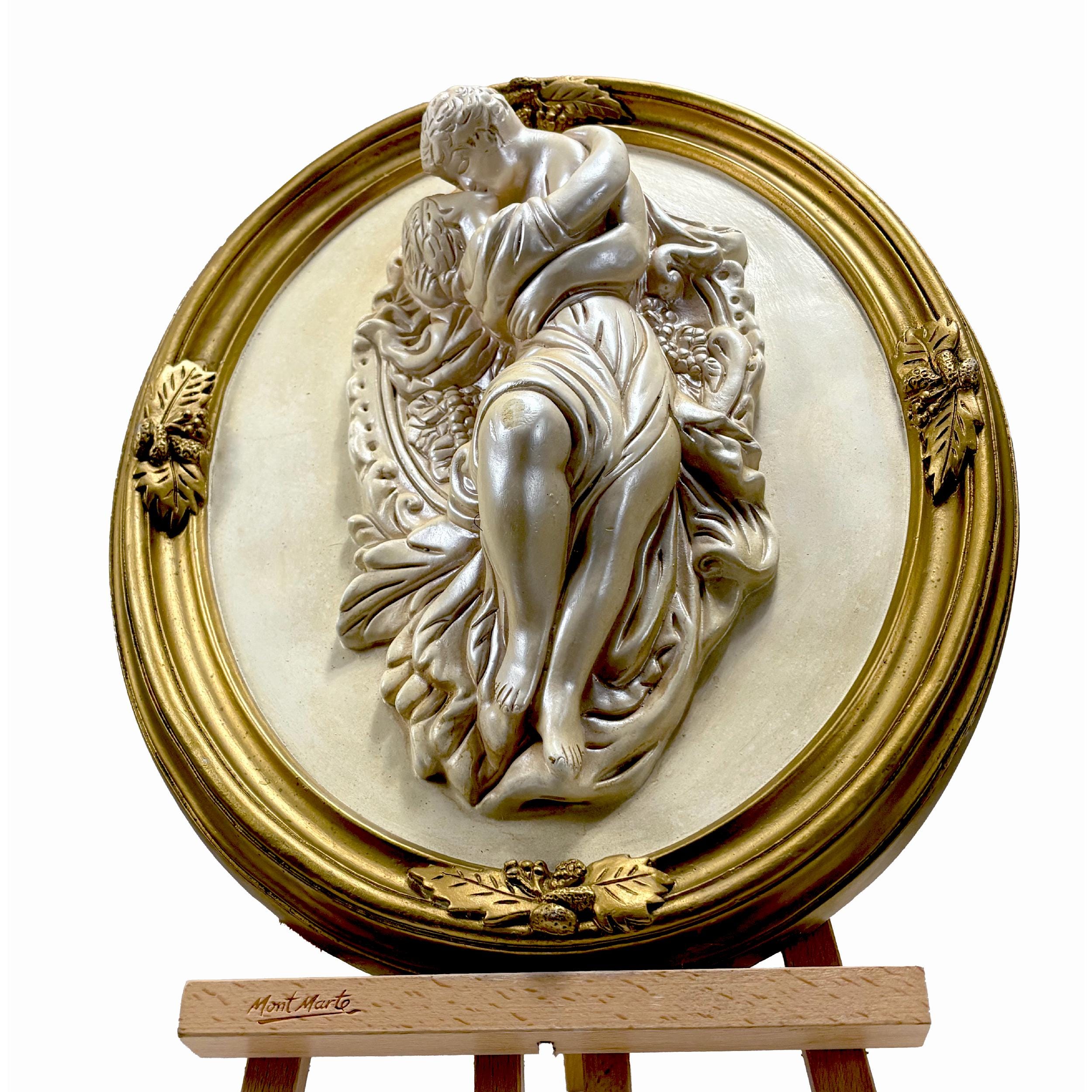 Romantic vintage deep bas relief plaque of two lovers in romantic embrace by Home Decor Associates of Lodi, NJ.