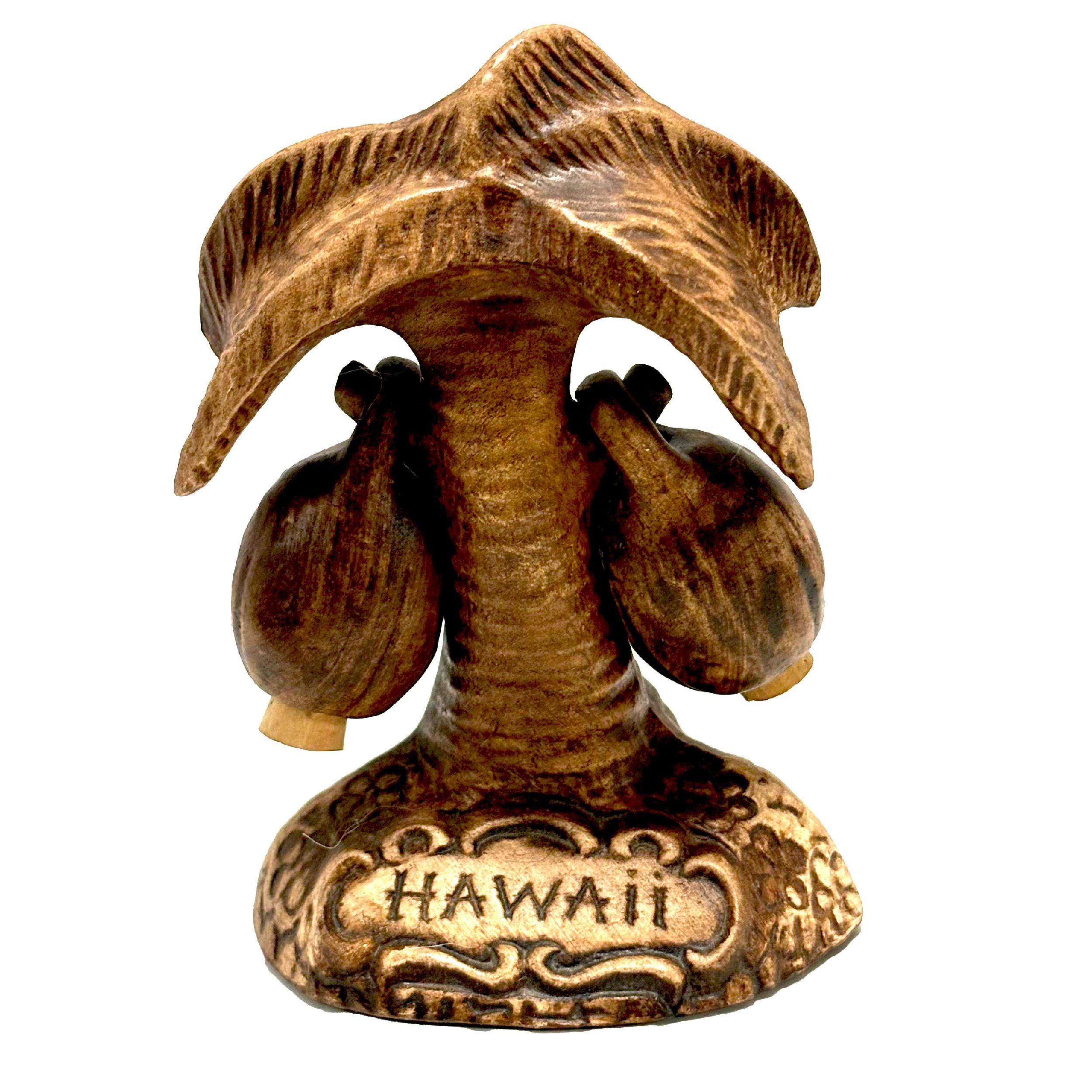 Mid-century vintage Hawaii palm tree and coconut salt & pepper shaker set by Treasure Craft.