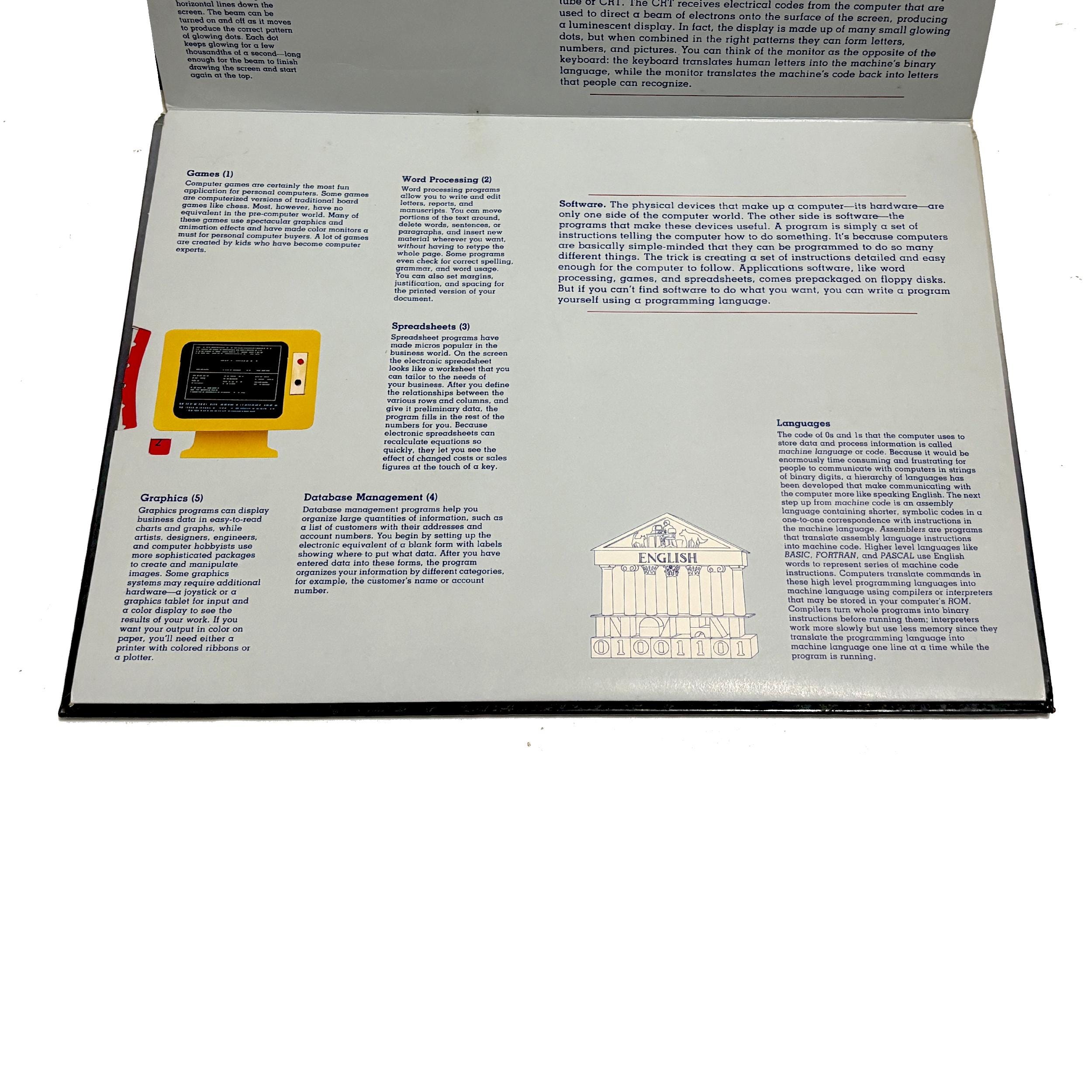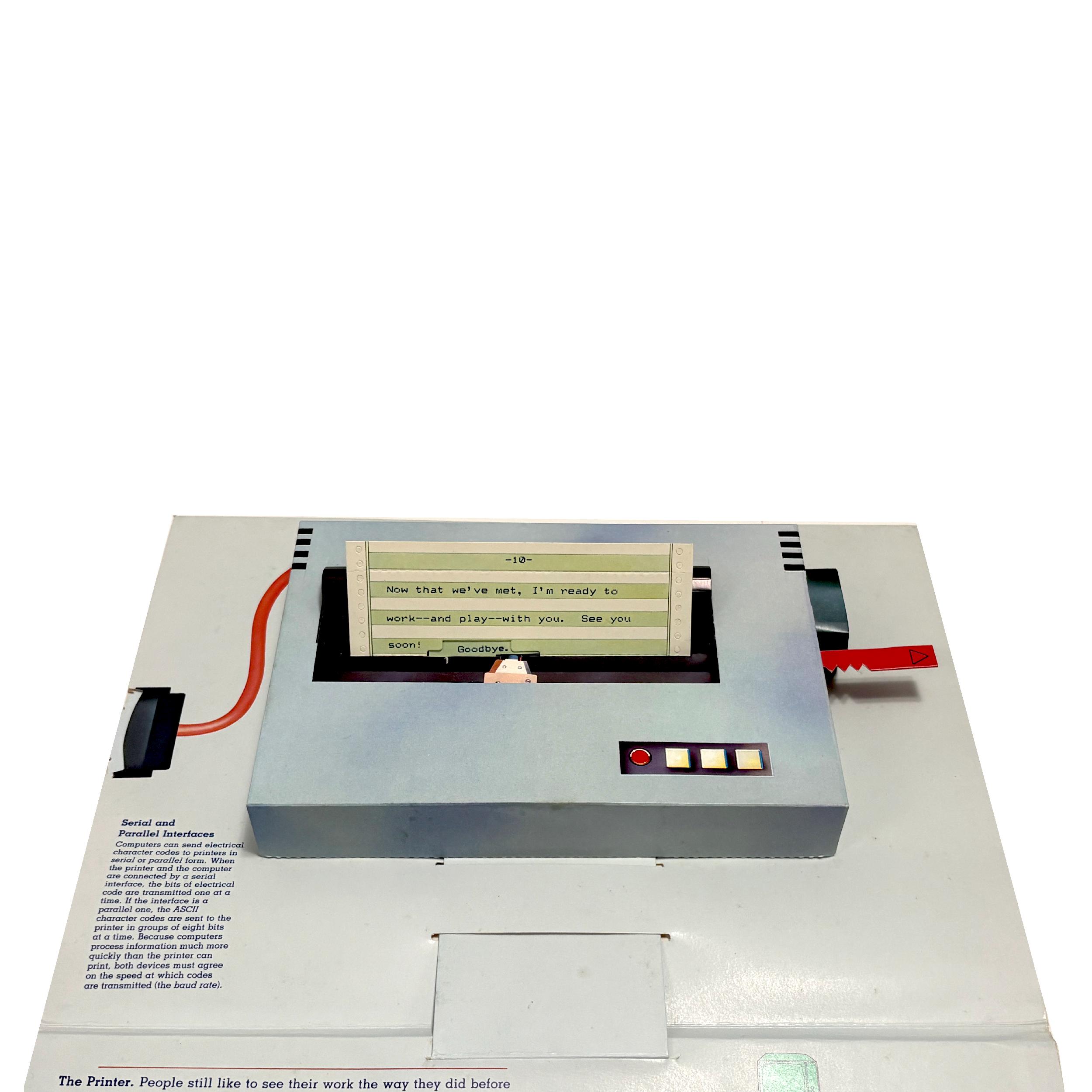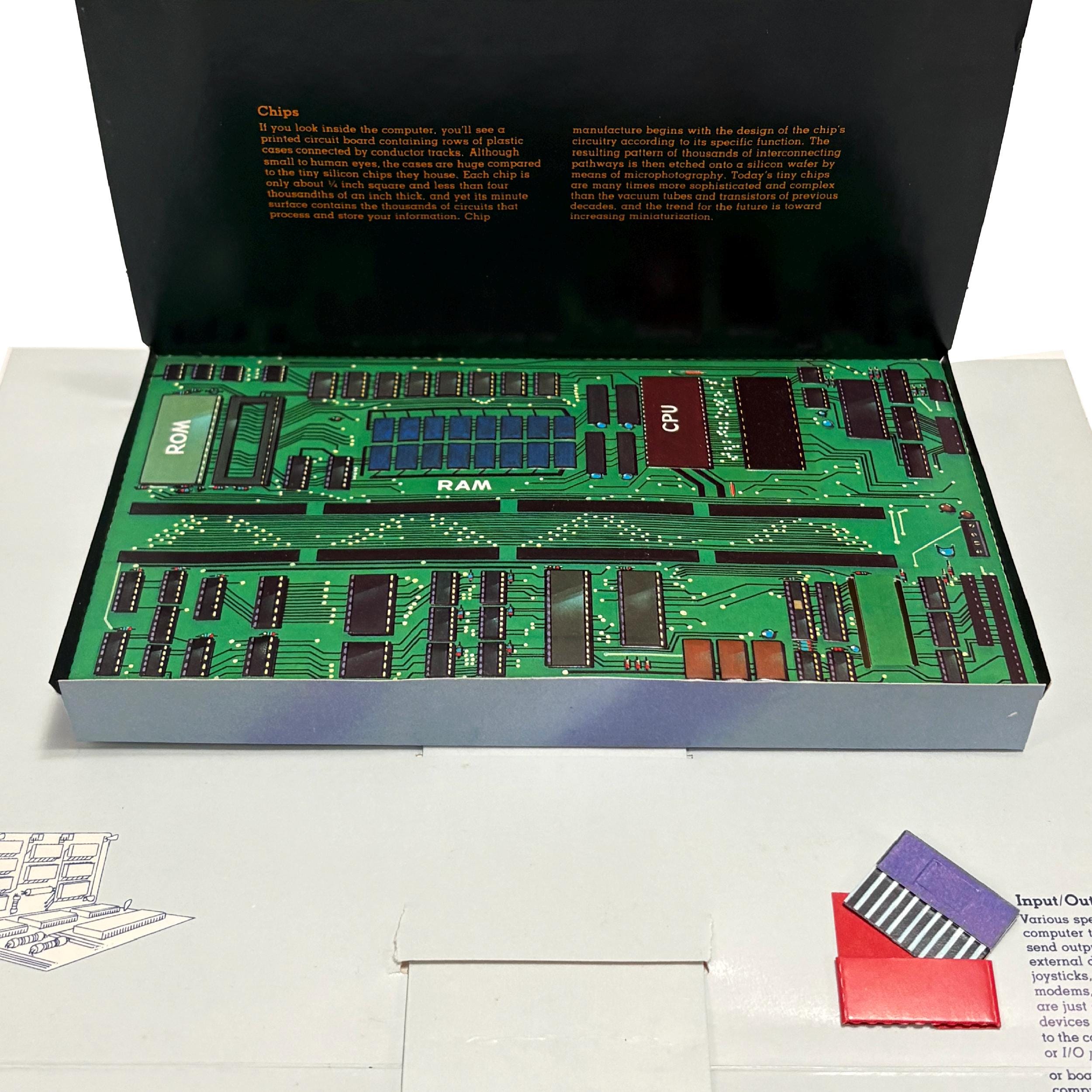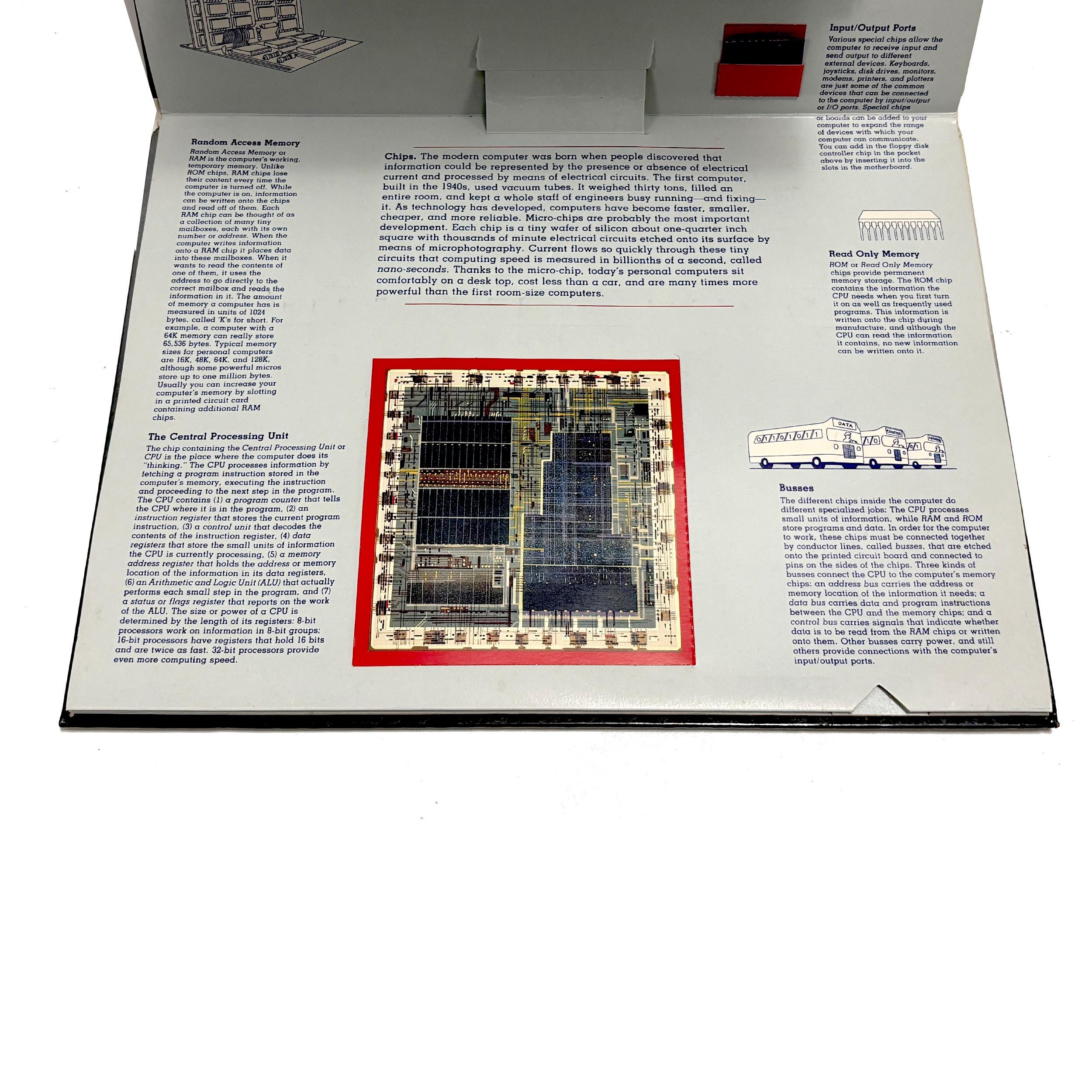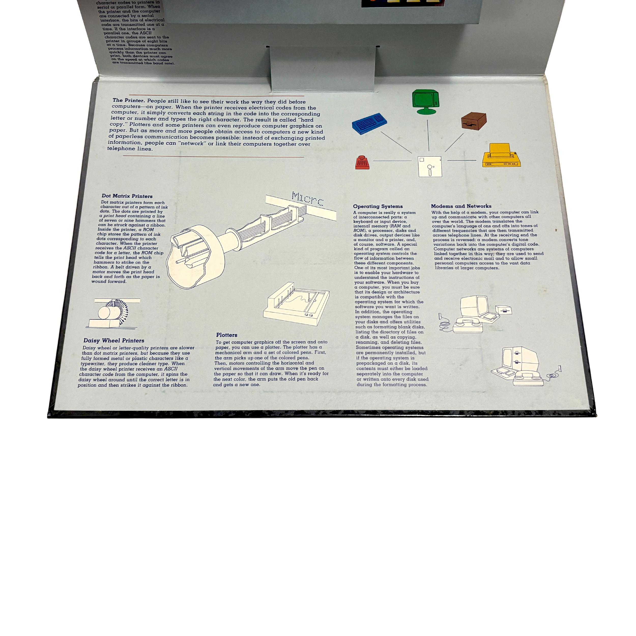 A 3-D popup illustrated book explaining the inner & outer workings of early text-based PCs. Quite an unusual piece for collectors and those interested in the history of home computing.