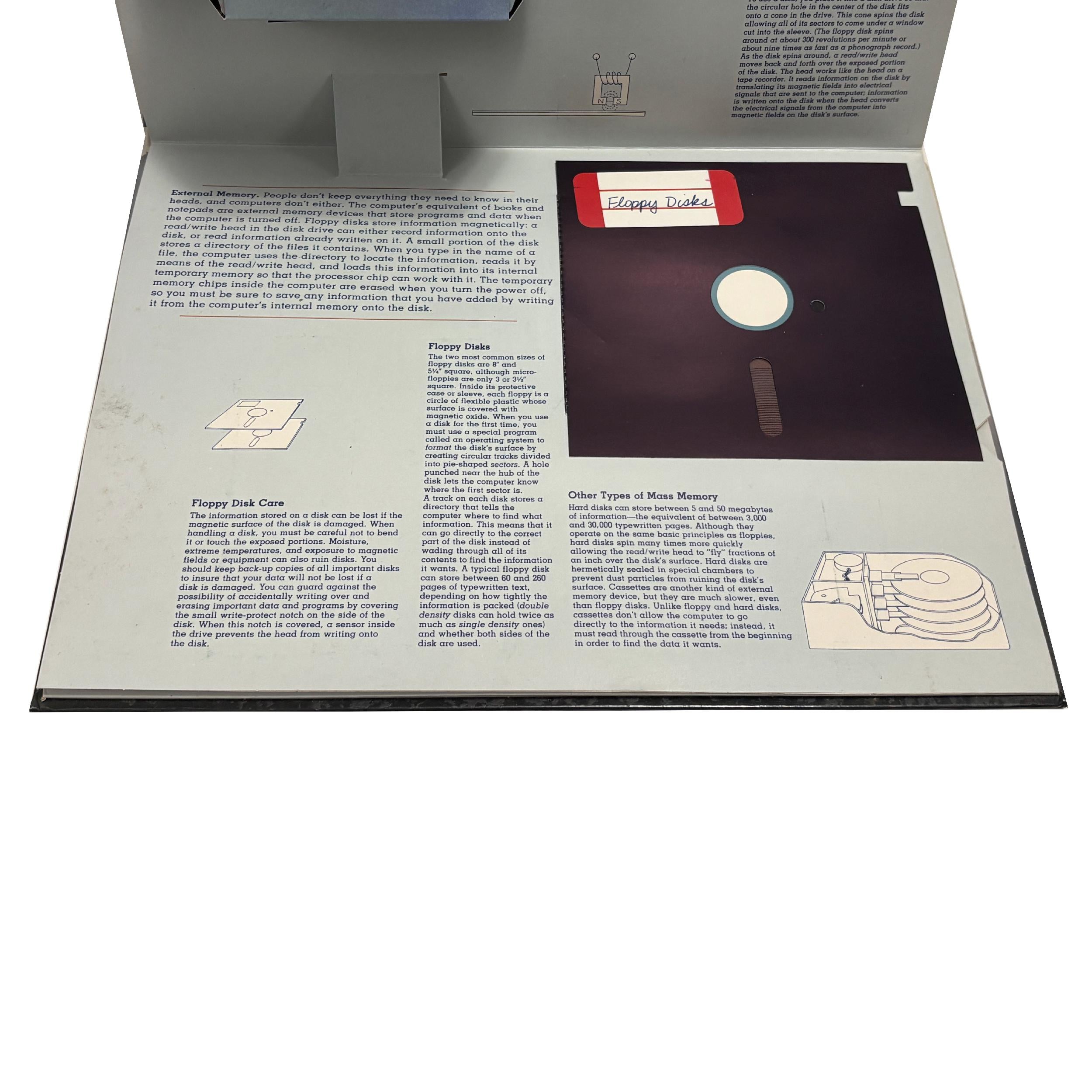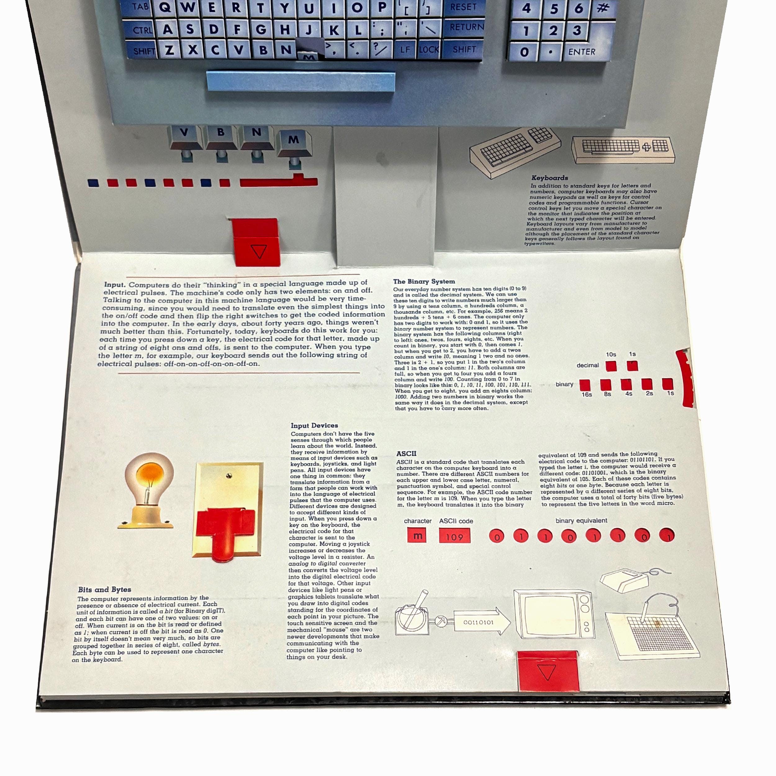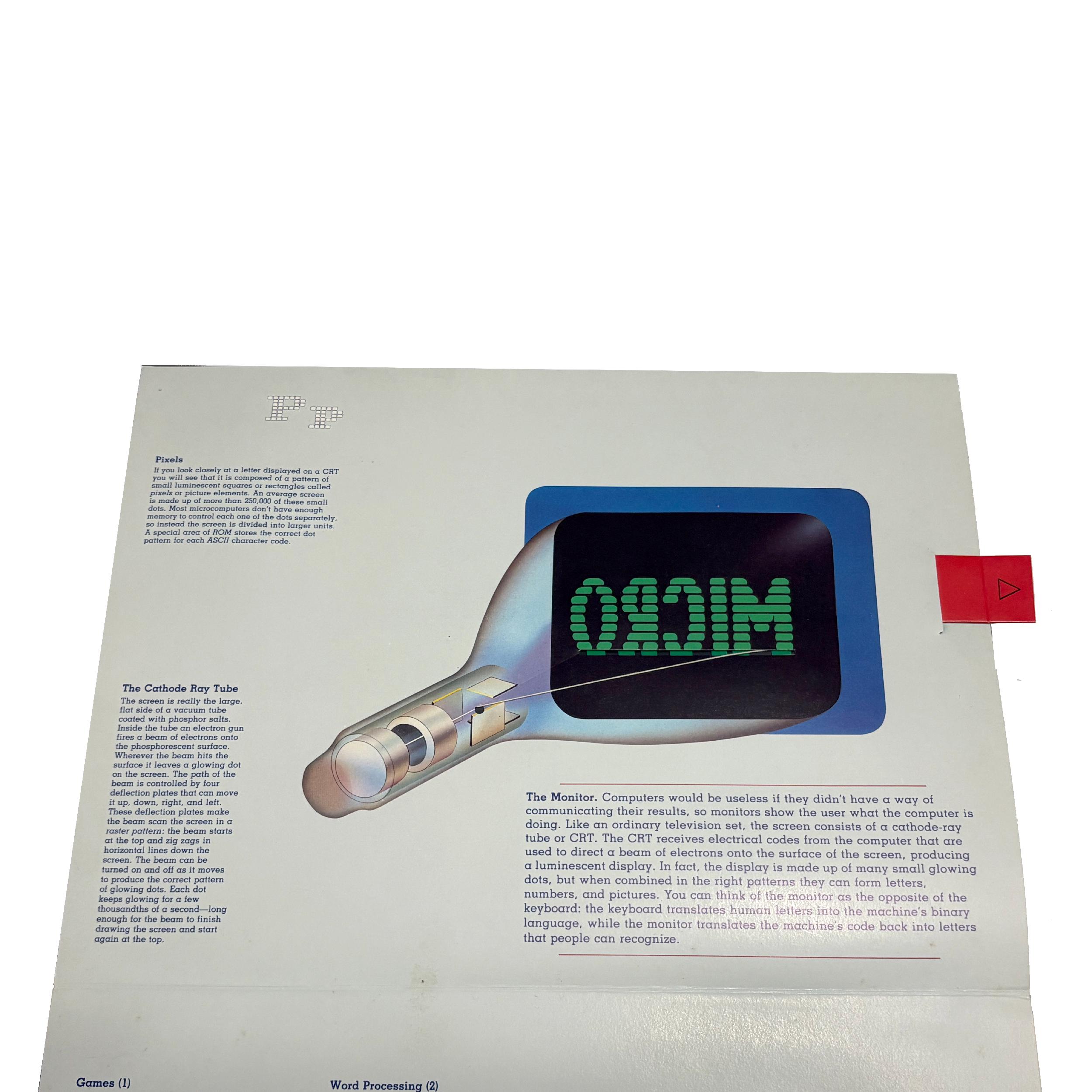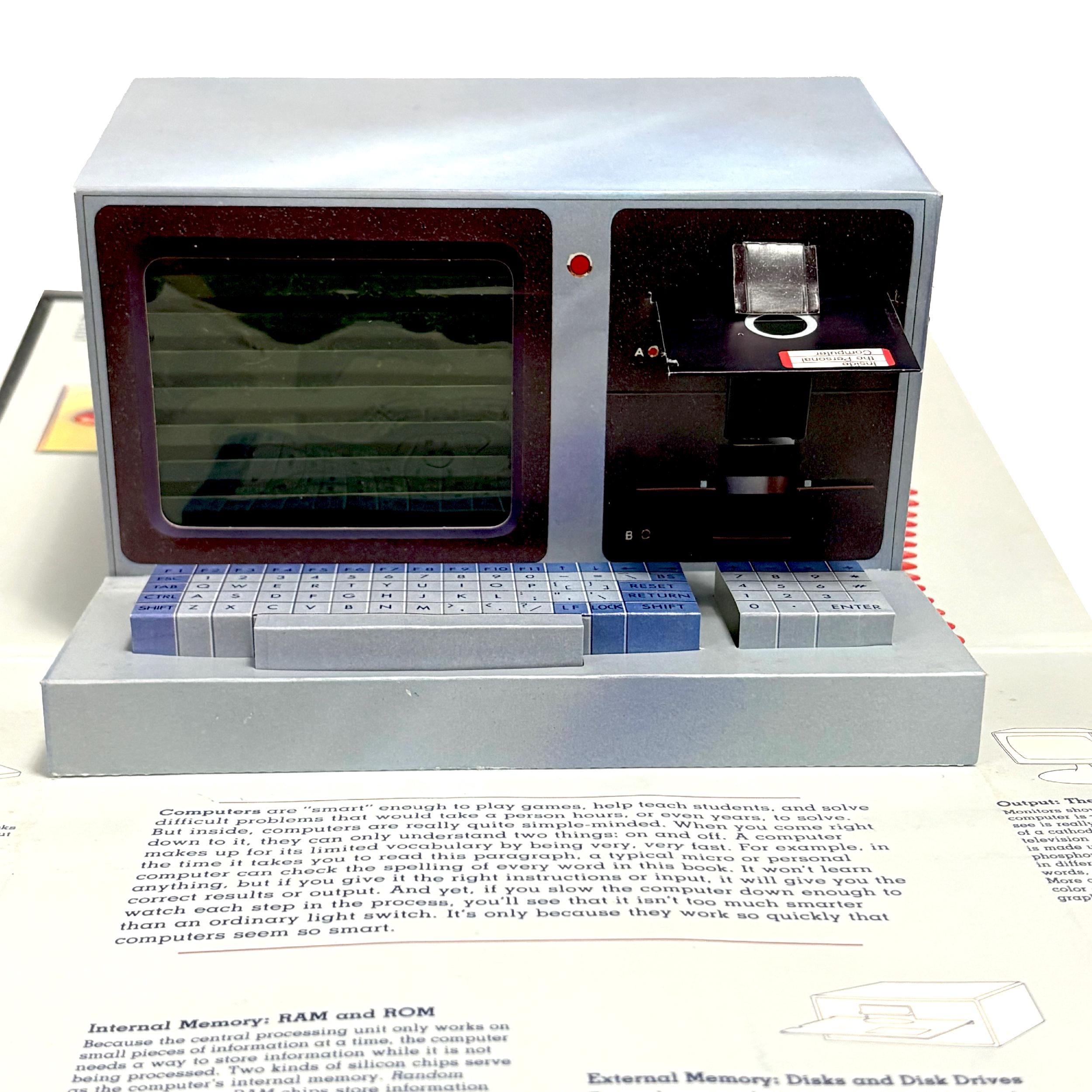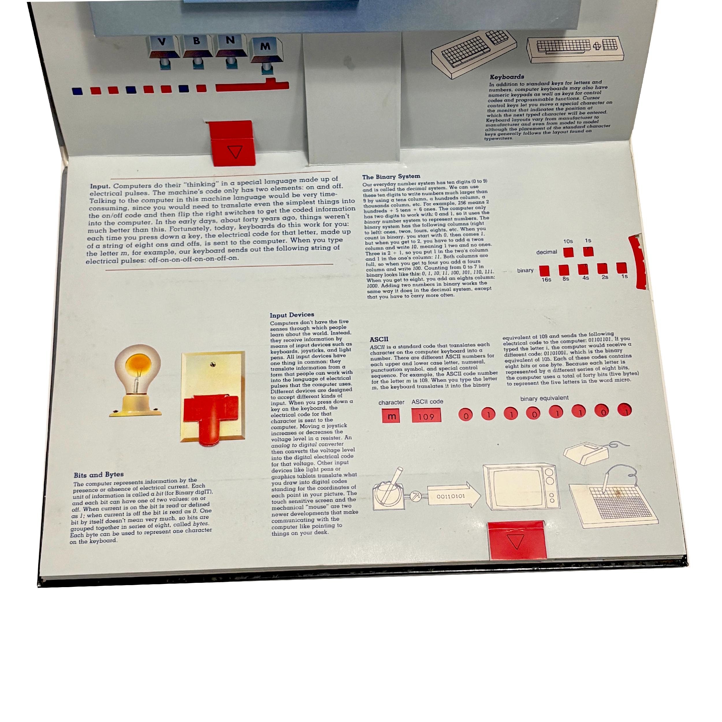 A 3-D popup illustrated book explaining the inner & outer workings of early text-based PCs. Quite an unusual piece for collectors and those interested in the history of home computing.